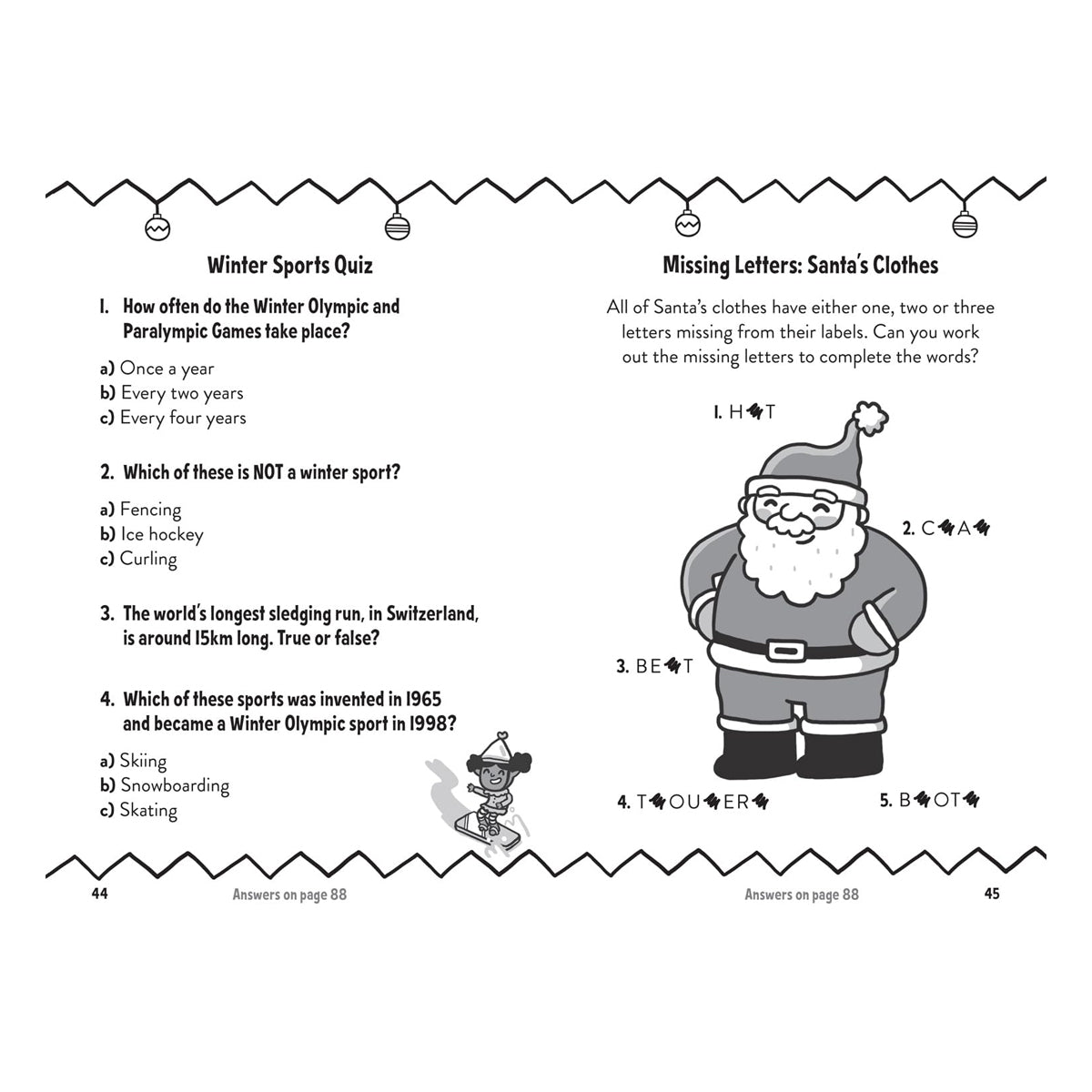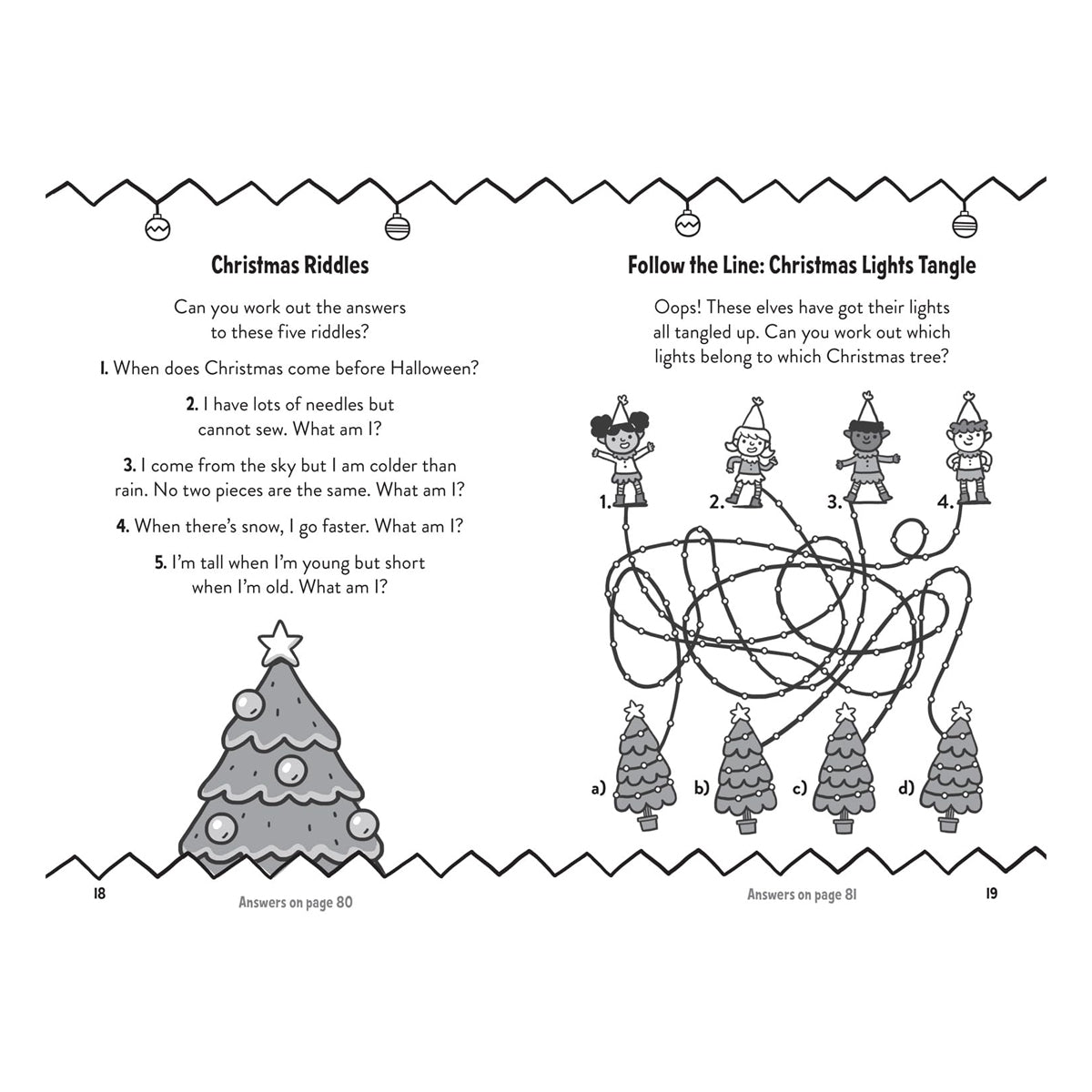Amazing Christmas Puzzles and Quizzes, çocuklar için Noel temalı eğlenceli ve zorlu bulmacalar ile quiz’lerle dolu bir aktivite kitabı. İçinde “farkı bul”, labirent, “farklı olanda ne var”, kelime bulmacaları gibi çeşitli oyunlar var — bu sayede hem eğleniyor hem de dikkat, mantık ve problem çözme becerilerini geliştiriyor. Renkli ve illüstrasyonlu sayfalarıyla tatil döneminde çocuklar için hem öğrenme hem eğlence sunuyor.