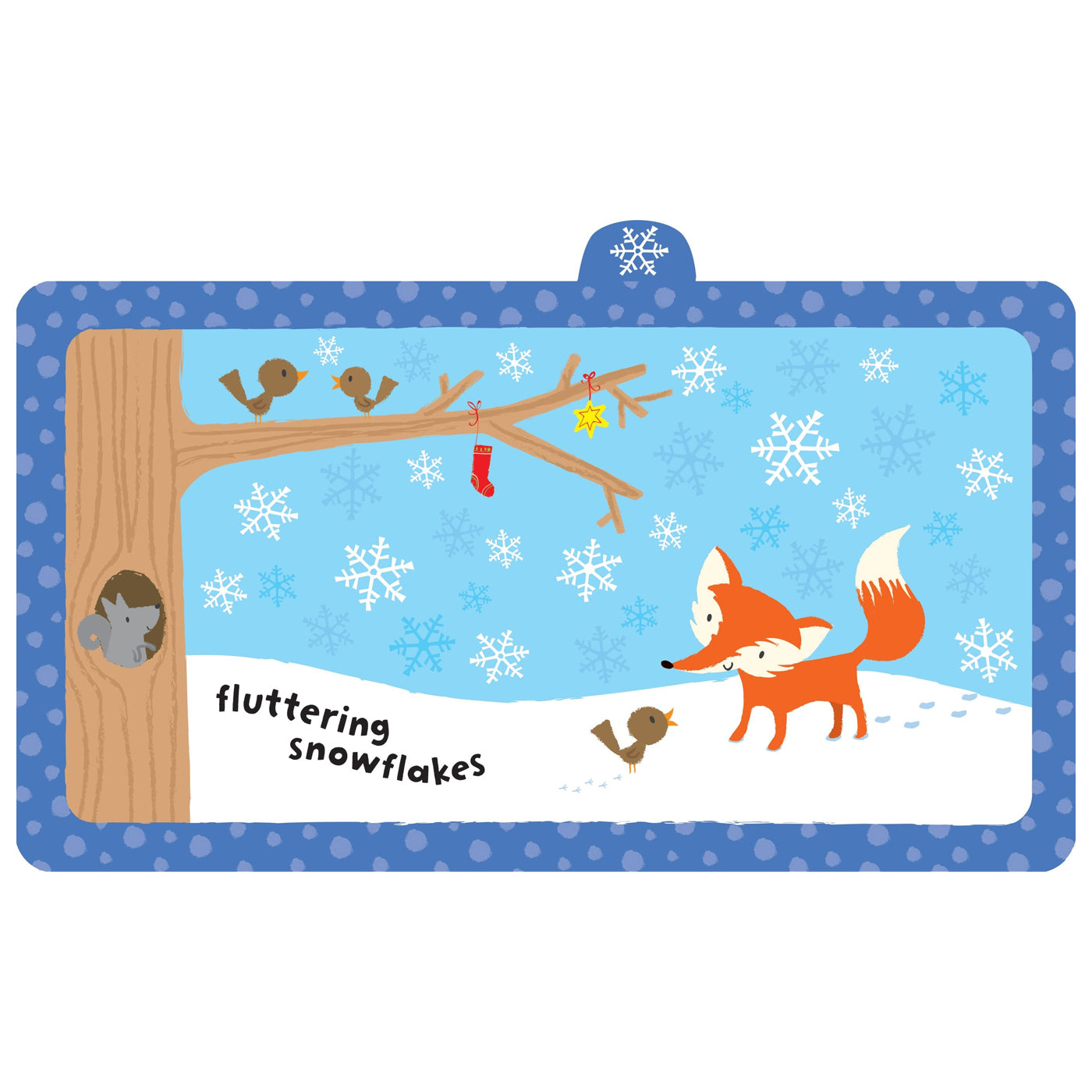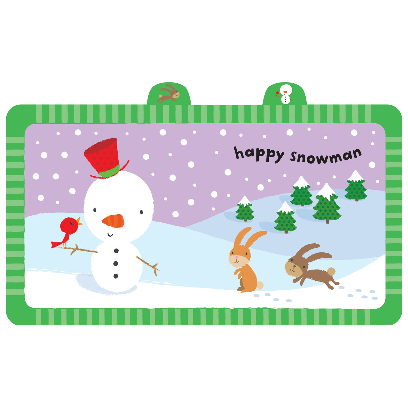 Küçük eller, uçuşan kar taneleri, mutlu kardan adam ve neşeli Noel Baba'ya eşlik edecek