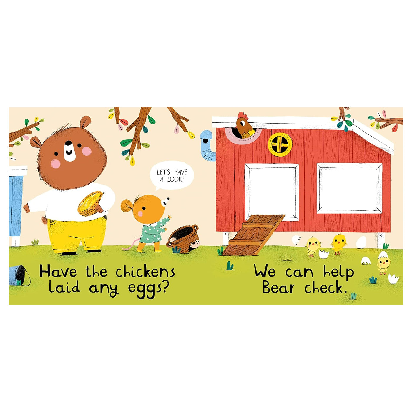 Akıllı kaydırma mekanizmaları ve kapakçıklar, çocukları kitapla etkileşime girmeye ve çiftlikte bulabilecekleri hayvanlar hakkında bilgi edinmeye teşvik ediyor.