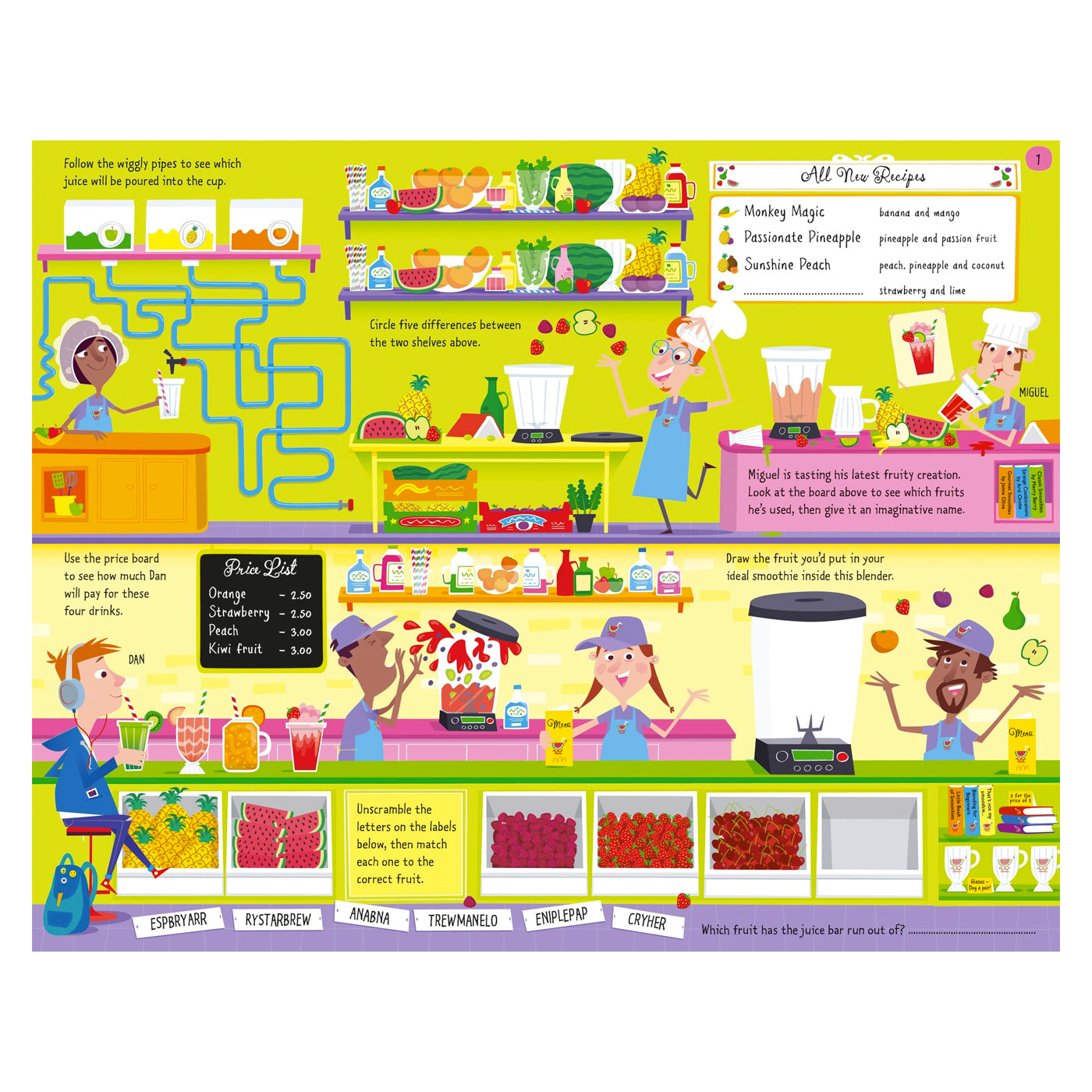 Bu heyecan verici aktivite kitabının her sayfası farklı bir temaya sahip. Korsanlardan robotlara, ormanlardan balıklara kadar sayfalarda fark edilecek onlarca şeyle, çözülecek bulmacalarla ve renklendirilecek ayrıntılarla dolu.