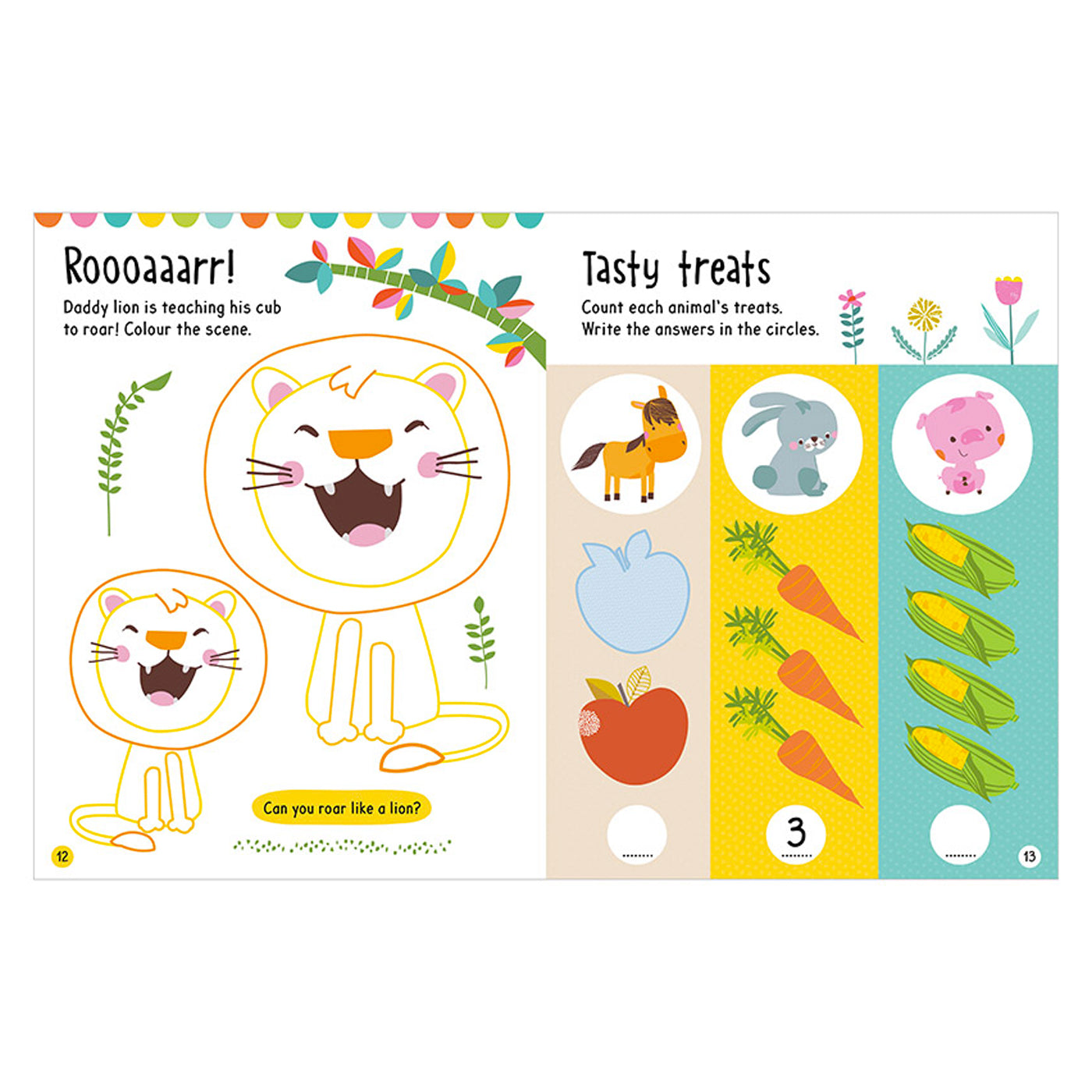 Küçük hayvanlar ile tanışmak için harika bir aktivite kitabı. Bu sevimli kitap, çocukları basit etkinlikler, büyük çıkartmalar ve kart baskıları eşliğinde küçük hayvanlarla tanıştırıyor. Her sayfa, küçük çocuklar için mükemmel olan eğlenceli aktivitelerle dolu.