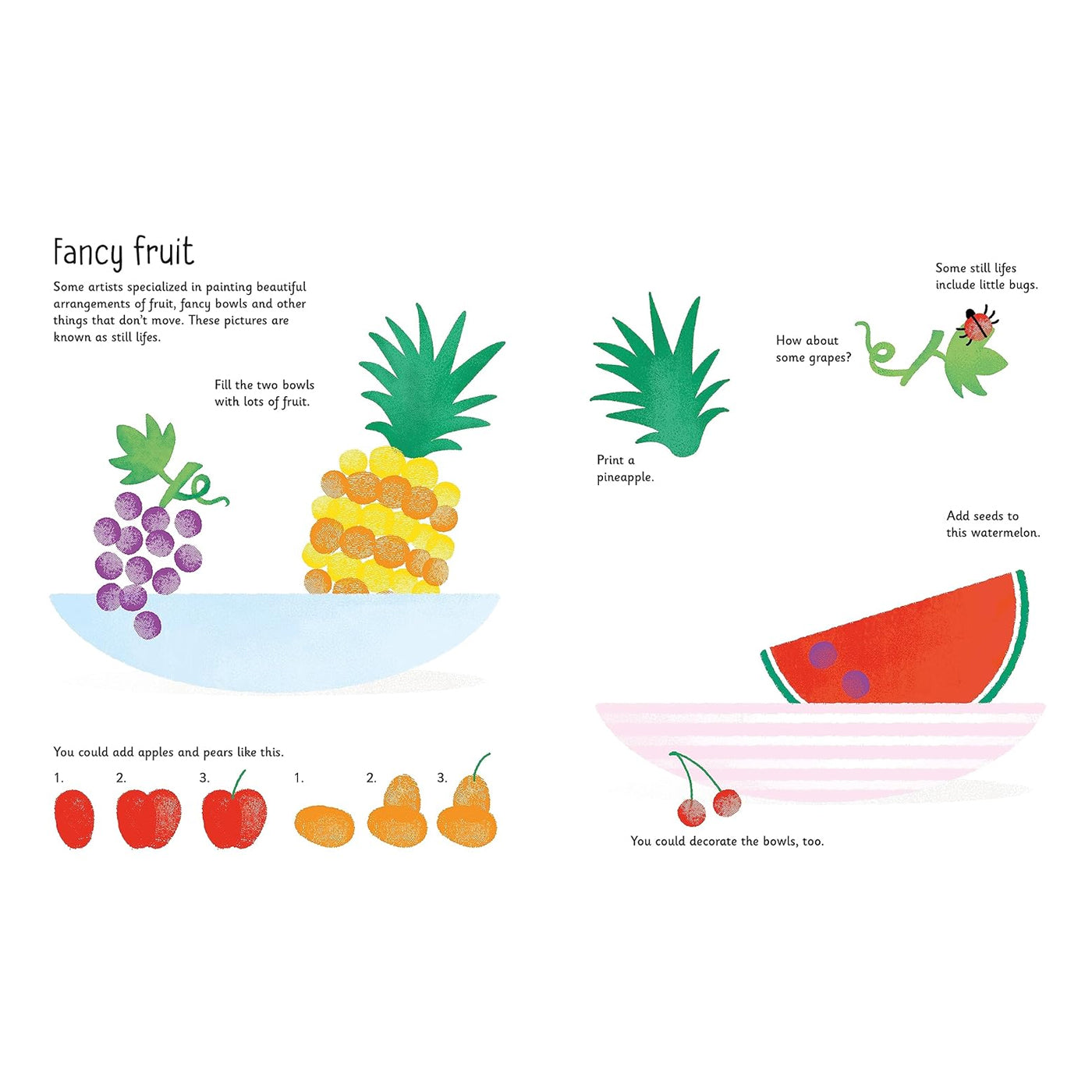 Kolay parmak izi fikirleri ile dolu, bu eğlenceli etkinlik kitabı yedi parlak renkteki kendi mürekkep pedi ile birlikte gelir. Ünlü resimlerden esinlenerek, şapkaları süsleyebilir, vazolara ayçiçeği koyabilir, kaplanlar ve ejderhalar üzerine noktalar koyabilir ve hatta kendi sanat serginizi oluşturabilirsiniz.