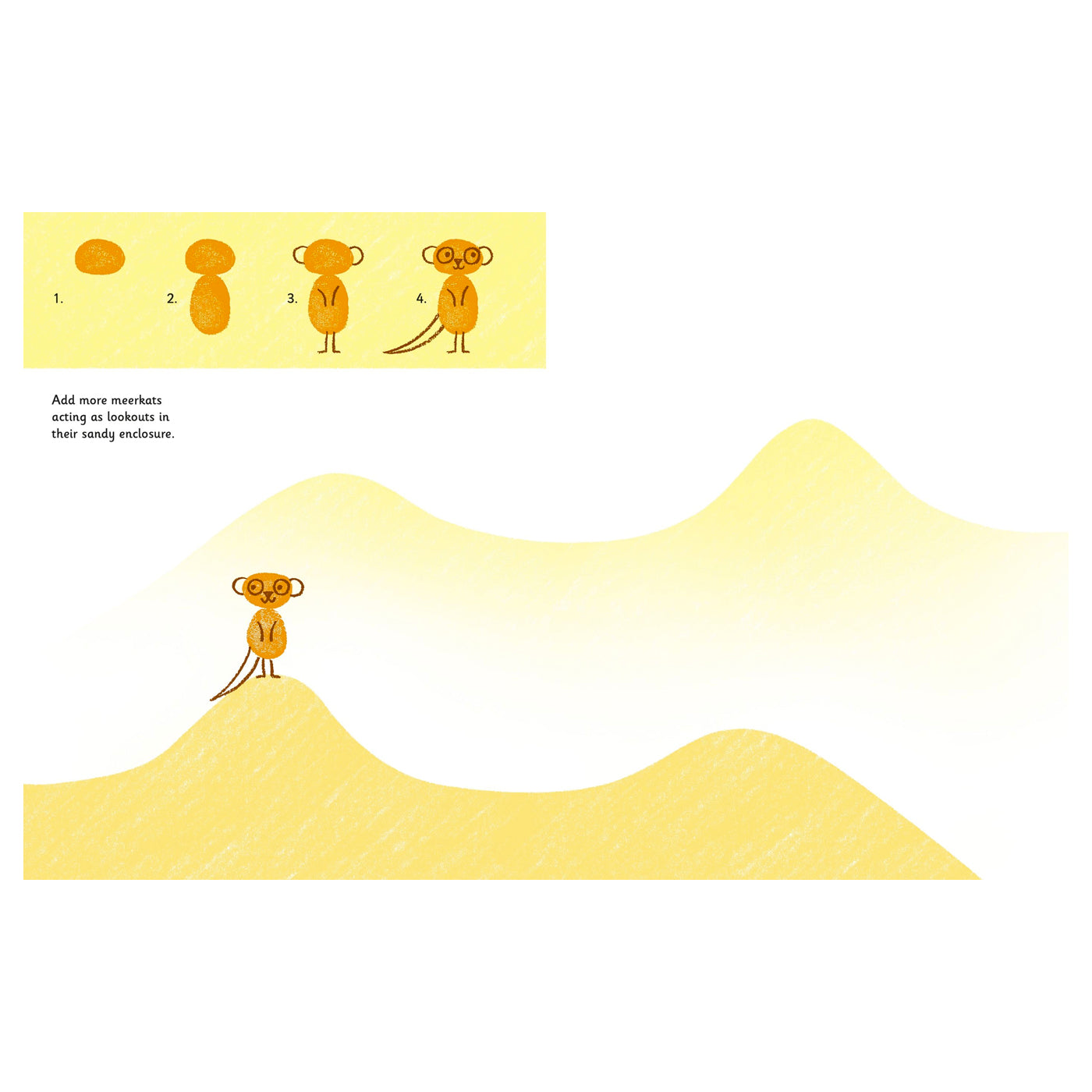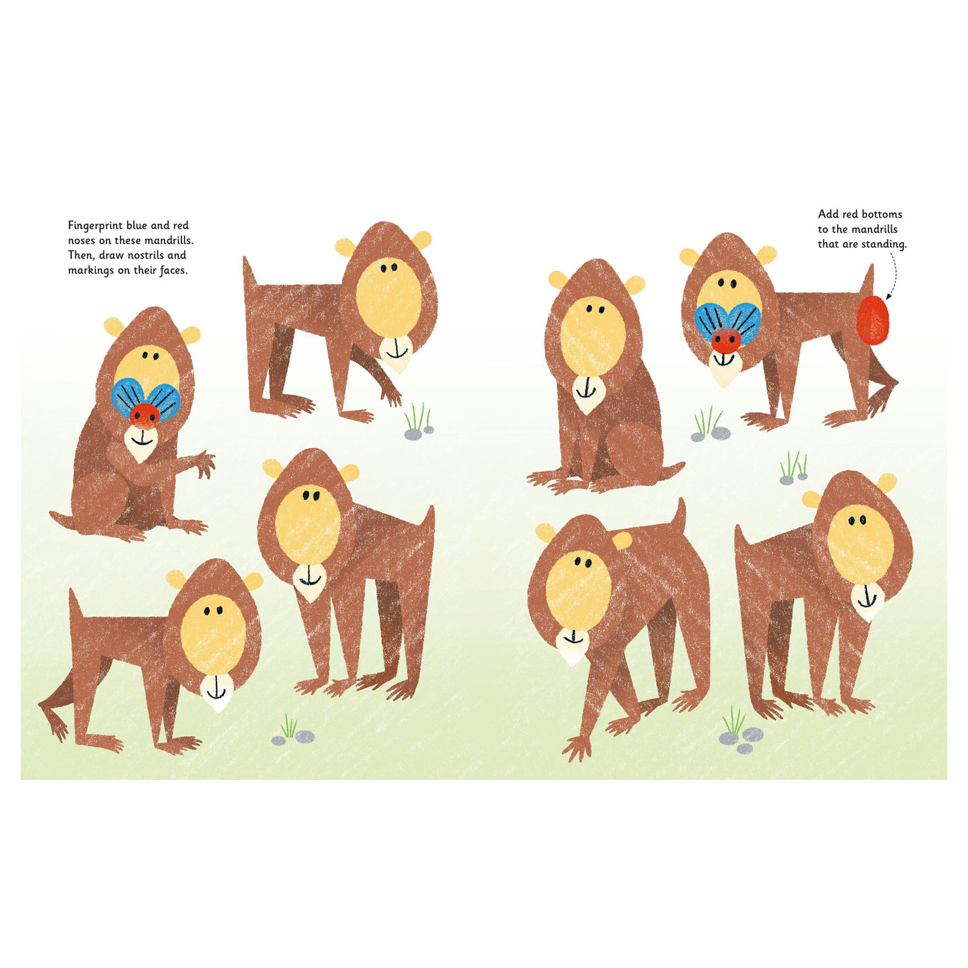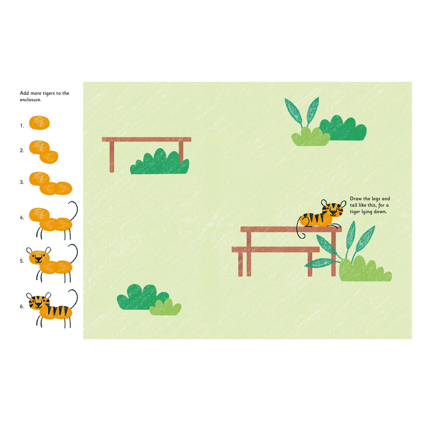 Bu eğlenceli etkinlik kitabıyla, hayvanat bahçesindeki farklı hayvanların resimlerini kolaylıkla yapabilirsiniz. Bir çita üzerindeki baskı lekeleri, gölde yuvarlanan suaygırları, lemurların kuyruklarındaki çizgiler, ağaçlara tırmanan koalalar ve çok daha fazlası. Aralarından seçim yapabileceğiniz yedi parlak mürekkep pedi ile resimleri tamamlayın.
