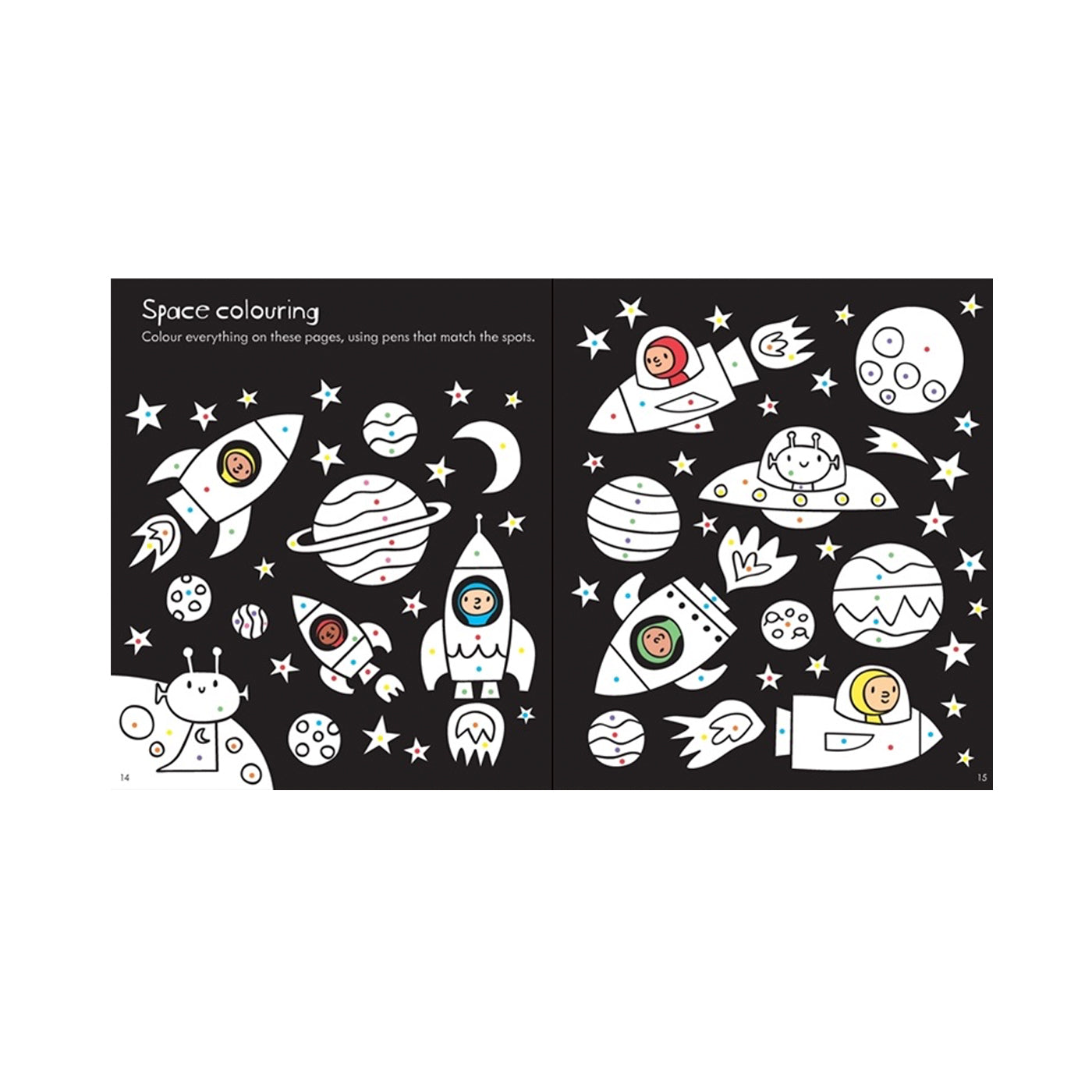 Güneş Sistemine gezegen çıkartmaları ekleyebilir, uzaya patlayan bir roket çizebilir, uzaylı bir doğum günü partisini renklendirebilir ve çok daha fazlasını yapabilirsiniz! Harika aktivitelerle dolu bu kitap çocuklar için öğrenmeyi eğlenceli hale getiriyor.