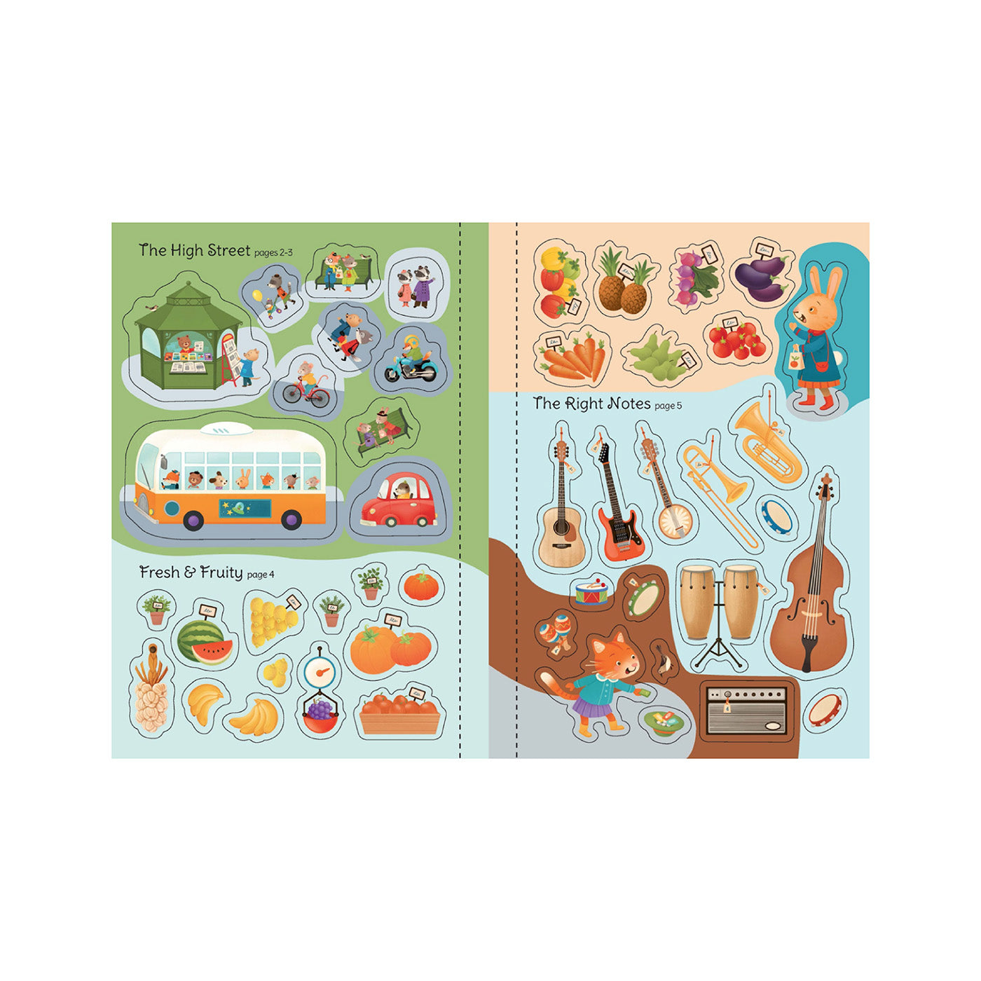 300'den fazla yeniden kullanılabilir çıkartma eşliğinde alışverişe çıkmaya ne dersiniz? Bu keyifli çıkartma kitabı ile bir çocuklar bir çiçekçinin, manavın ya da oyuncakçının raflarını düzenleyebilir, sergilenecek ürünleri kendi zevklerine göre seçebilirler. Çıkartmalarını saklamak için kitabın arka kapağında katlanabilir bir alan da bulunuyor.