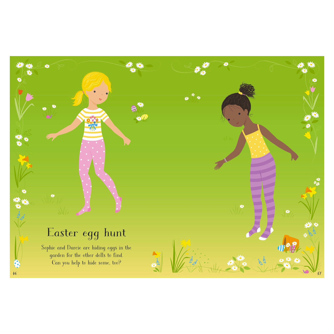 Paskalya temalı bu sticker kitabıyla, yeni doğan kuzuları ve yavru kuşları beslemek, Paskalya tavşanlarıyla oynamak, Paskalya yumurtası avına çıkmak gibi birçok bahar aktivitesini yaparken, 10 sayfadan fazla sticker'la kitaptaki karakterleri giydirin.
