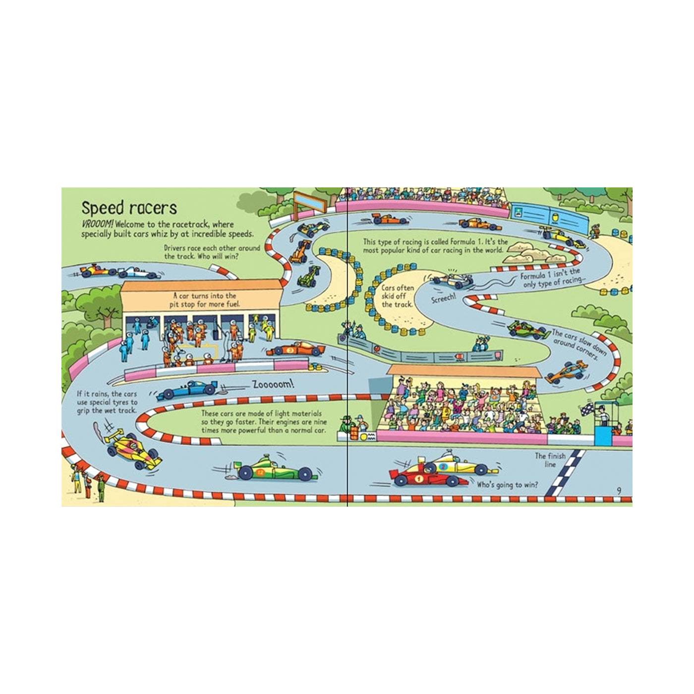 Arabaların nasıl çalıştığını ve yapıldığını gösteren, yarış pistlerinin dinamiklerini anlatan bu kitaba araba meraklısı çocuklar bayılacak! 60'dan fazla altında süprizlerle dolu kapakları kaldırın ve arabalarla ilgili yeni keşifler yapmaya başlayın. Harika çizimlerle dolu bu kitap çocuklar için öğrenmeyi eğlenceli hale getiriyor.