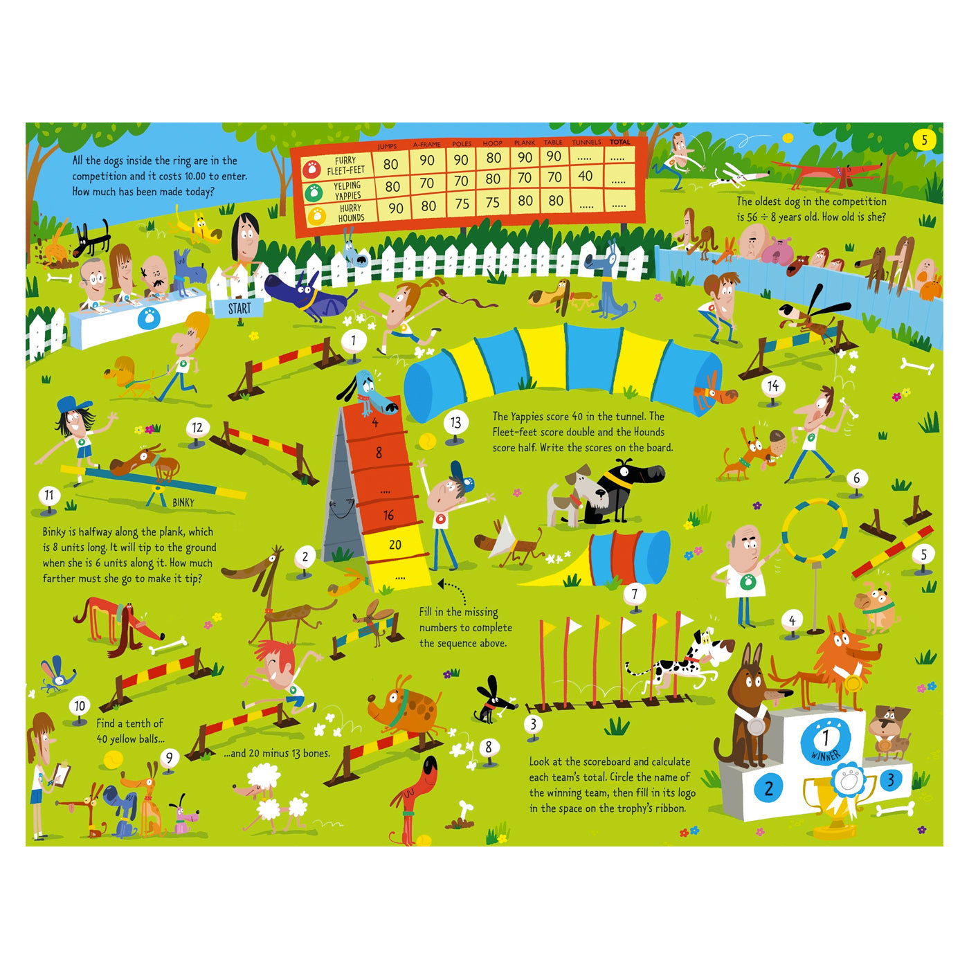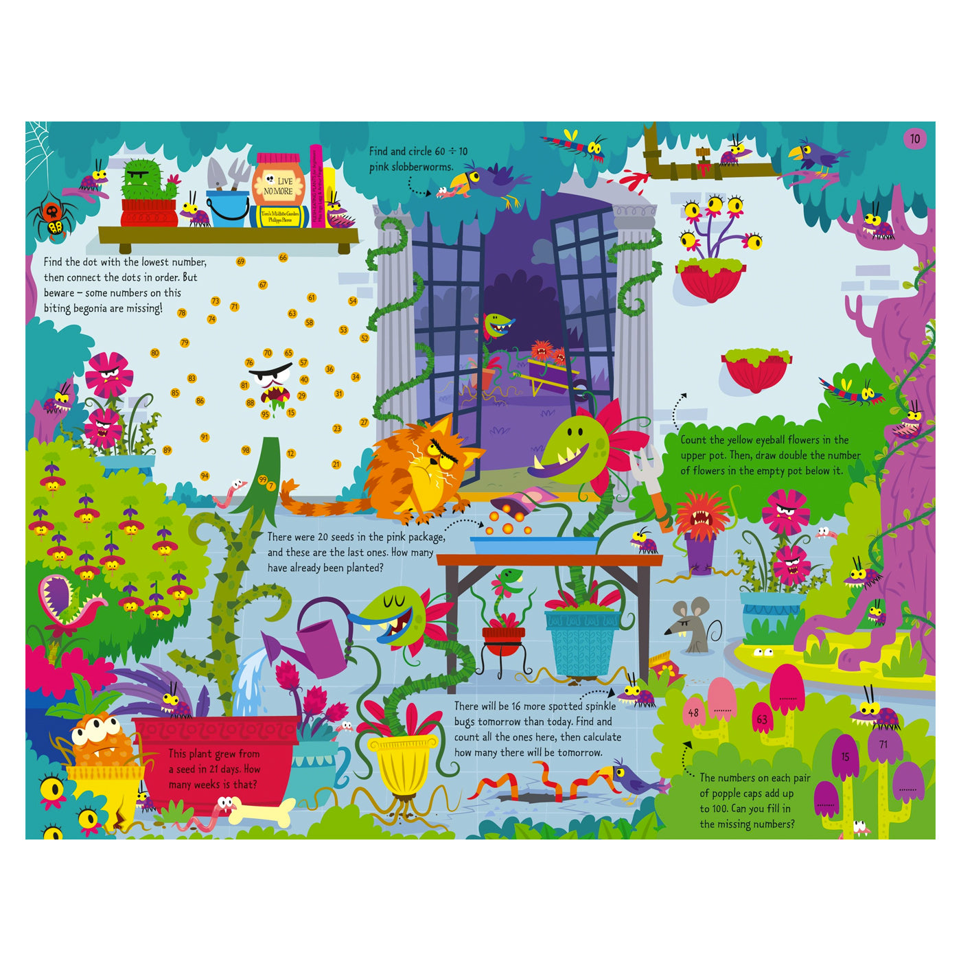 Bu heyecan verici kitap, toplama ve çıkarma, çarpma ve bölme, diziler, kesirler ve zaman gibi temel konuları kapsayan çok sayıda matematiksel bulmaca ile dolu. 30 renkli sayfanın her biri, canavarlardan robotlara, parklardan pizzaya kadar farklı bir temaya sahip.
