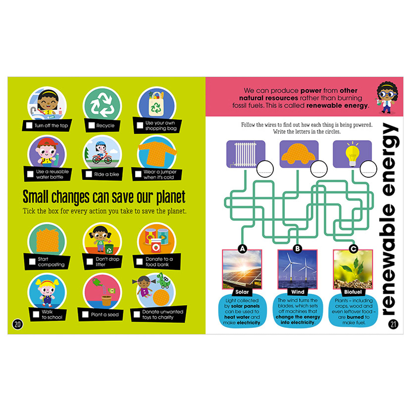 Bir çocuk dergisi gibi tasarlanan Being Kind to the World serisi, küçük değişikliklerin değerli gezegenimizde ne kadar büyük bir fark yaratabileceğini göstermek için basit bilgi grafiklerini, hikayeleri, etkinlikleri ve çizgi romanları kullanıyor. İçerikler, küresel ısınma, iklim değişikliği, yenilenebilir enerji ve sürdürülebilir yaşam gibi önemli konuları kapsıyor ve genç beyinlerin geleceğimizin yörüngesine yatırım yapmasına yardımcı oluyor. Geri dönüştürülmüş kağıttan yapılan bu bilgi dolu aktivite kitabı, fark yaratan yaratıcı kart baskılarının yanı sıra 200'den fazla da çıkartma içeriyor.