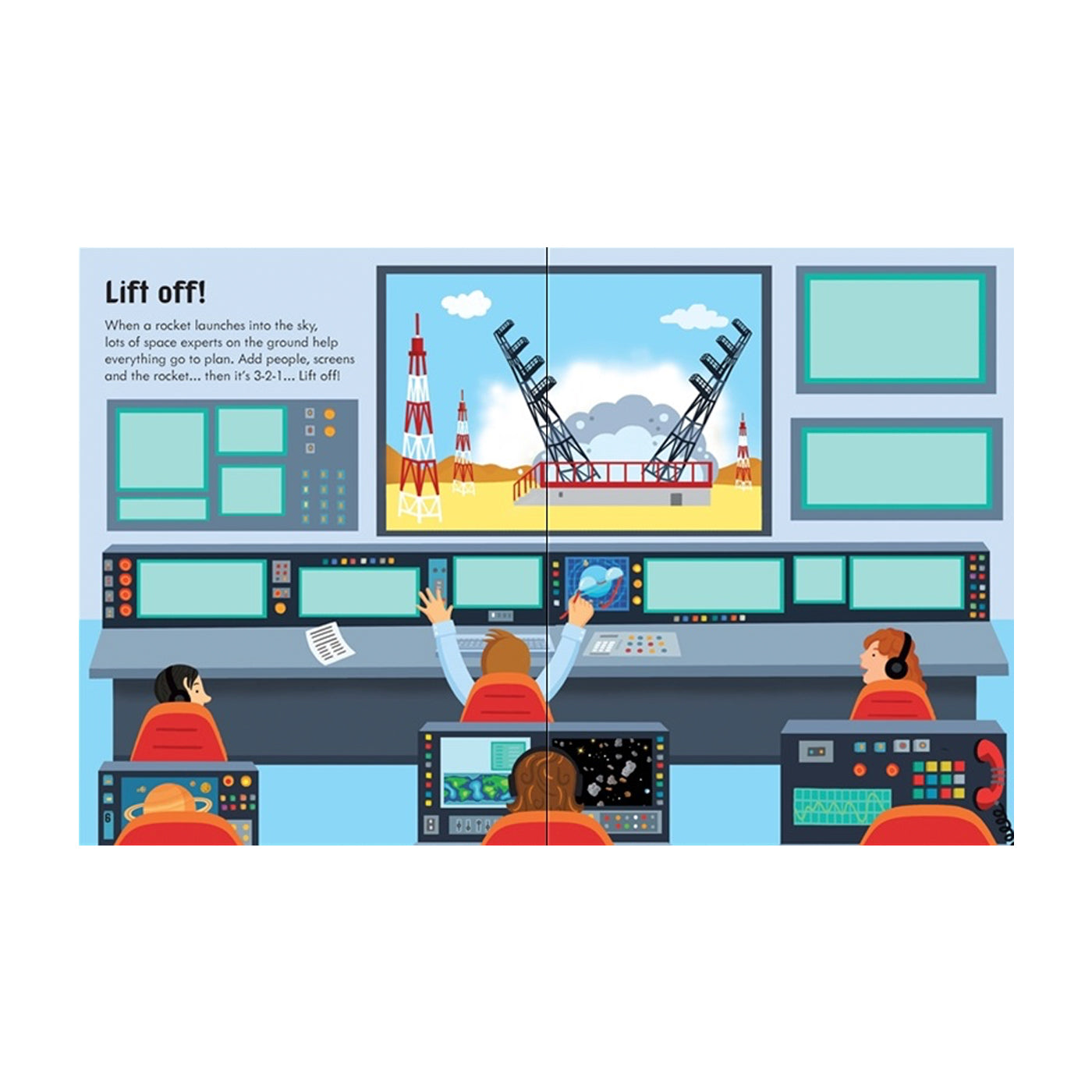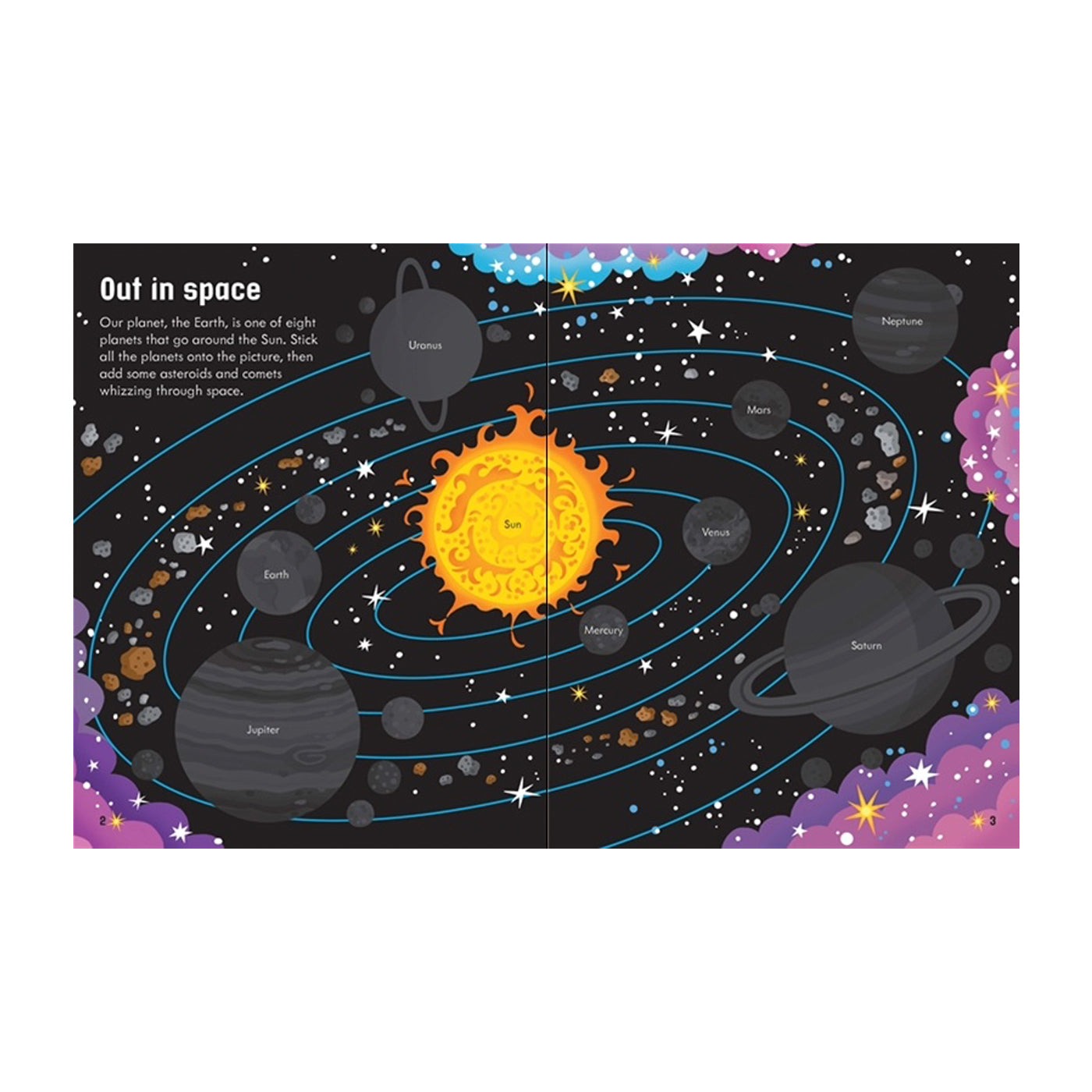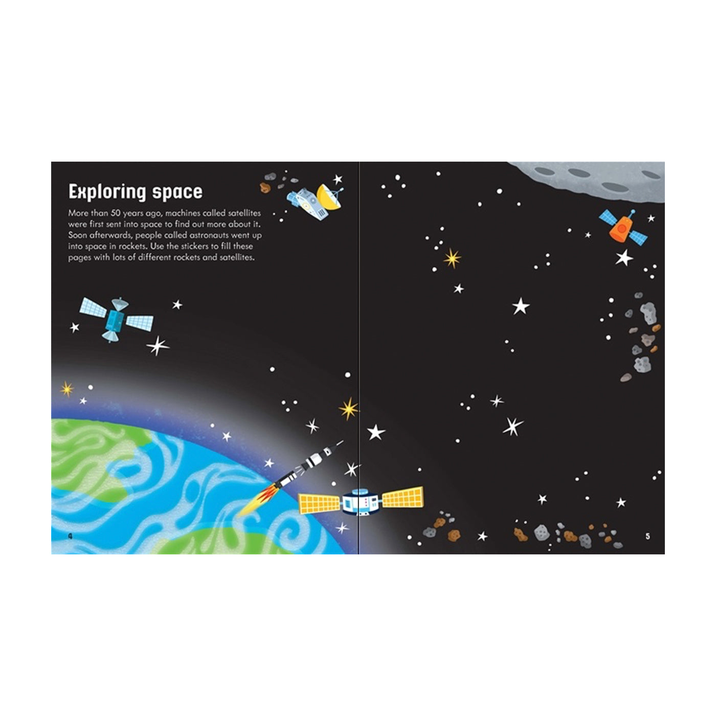Küçük astronatların bayılacağı bu kitabın sayfalarında uzayı keşfetmek için uyduları nasıl kullandığımızdan, astronotların Uluslararası Uzay İstasyonu'nda nasıl yaşadıklarına kadar uzay yolculuğu hakkında pek çok büyüleyici bilgi ve sahneler yer alıyor. Roket, astronot, yıldız gözlem ekipmanı, uzay istasyonu modülleri, Mars gezgini gibi 200'den fazla çıkartmayı kullanarak, uzayda ufak bir yolculuğa çıkıyor ve bu sahneleri tamamlıyorlar.