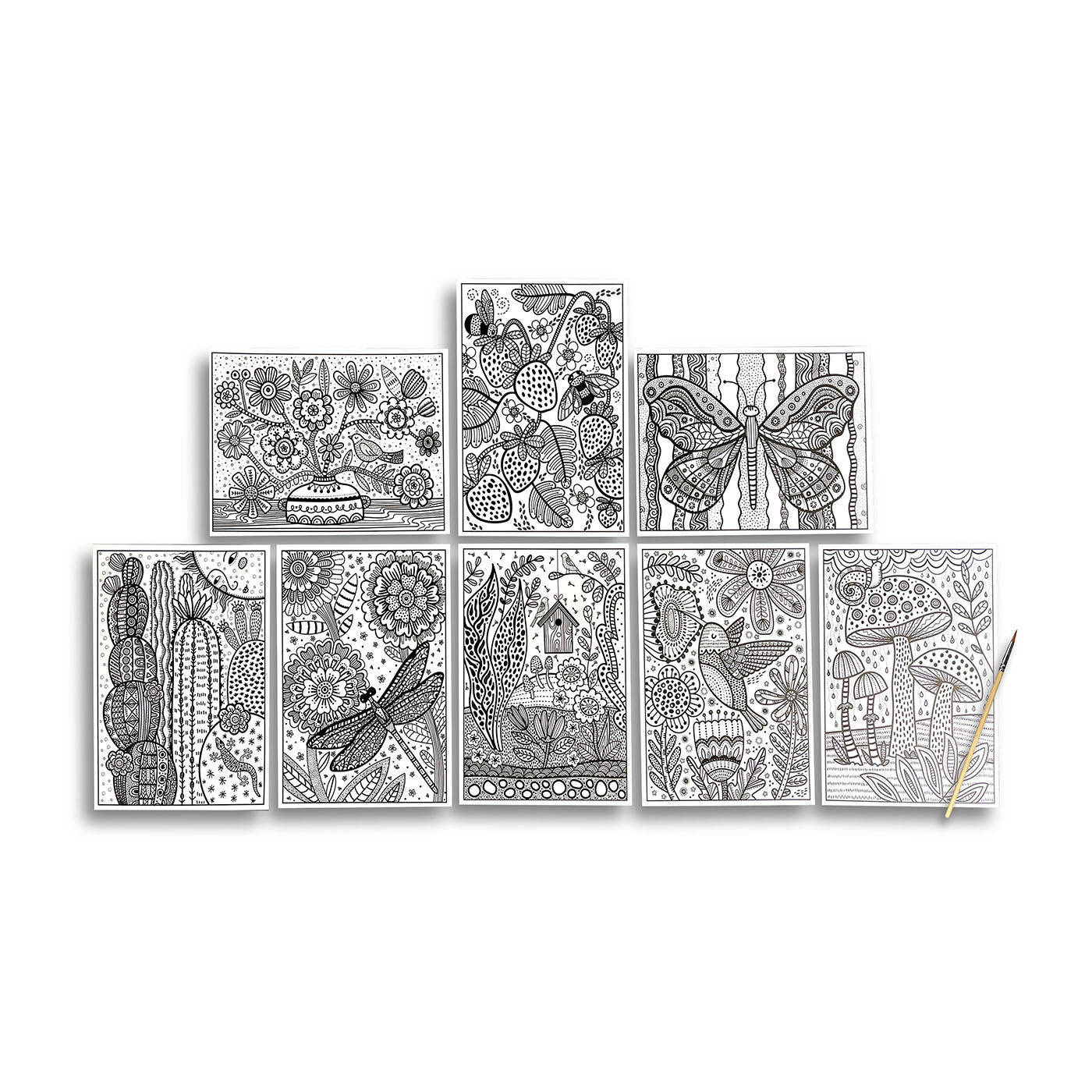 İlhamını doğadan illüstrasyonlar, renklerine kavuşmayı bekliyor. Setin içinden çıkan fırçayı suya batırıp resimlerin üzerinde gezdirdiğinizde, büyülü doğa temalı sayfalardaki harika renklerin ortaya çıkacak.