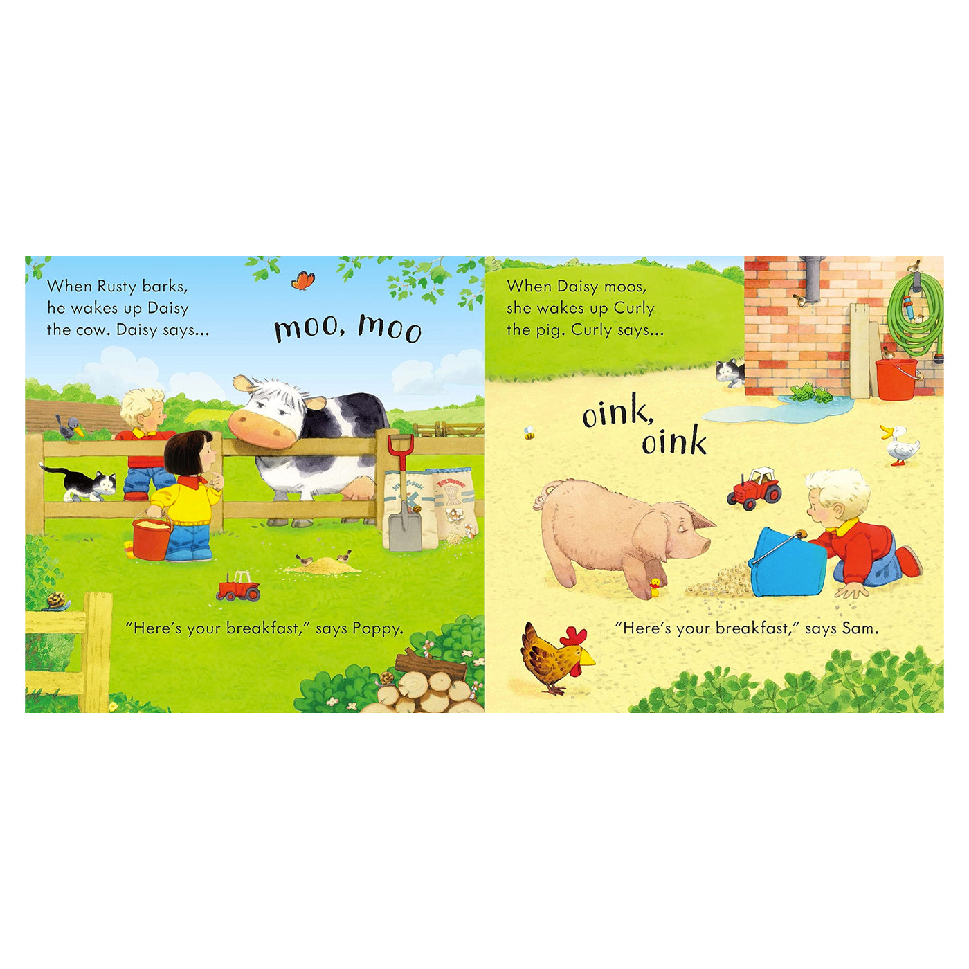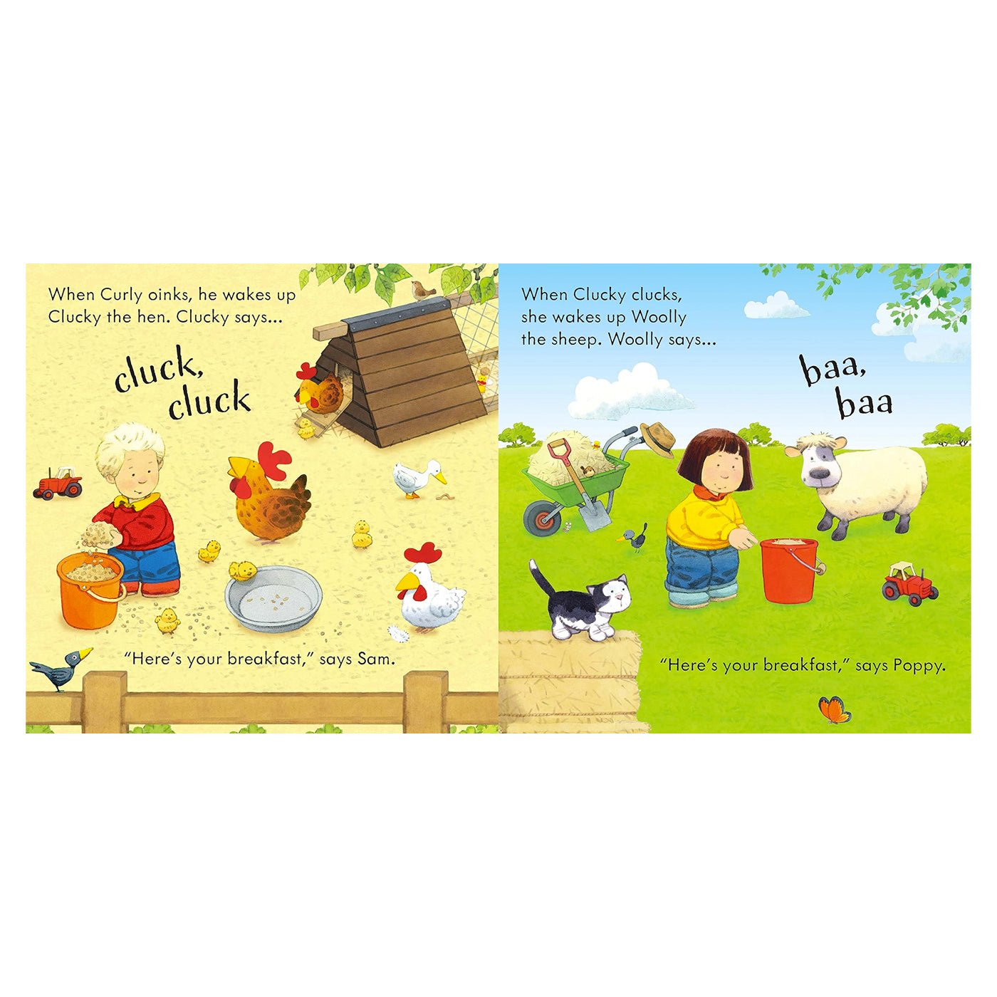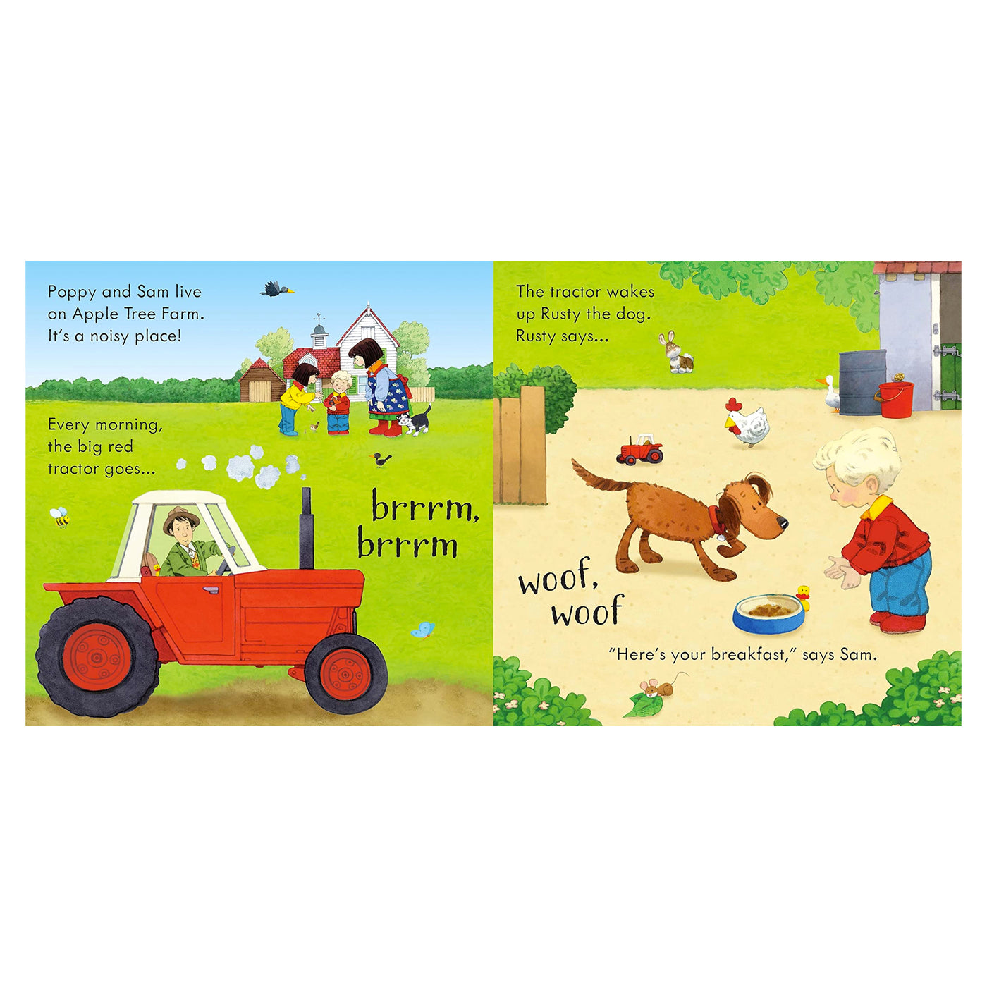 Apple Tree Farm'daki hayvanların seslerini duymak için kitaptaki düğmelere basın. Çiftlikte dolaşırken Poppy ve Sam'e katılın ve domuz Curly'yi, koyun Woolly'yi, köpek Rusty'yi ve midilli Pippin'i dinleyin. Sonunda neşeli bir ezgi eşliğinde tüm gürültülü hayvanları aynı anda duyacaksınız.