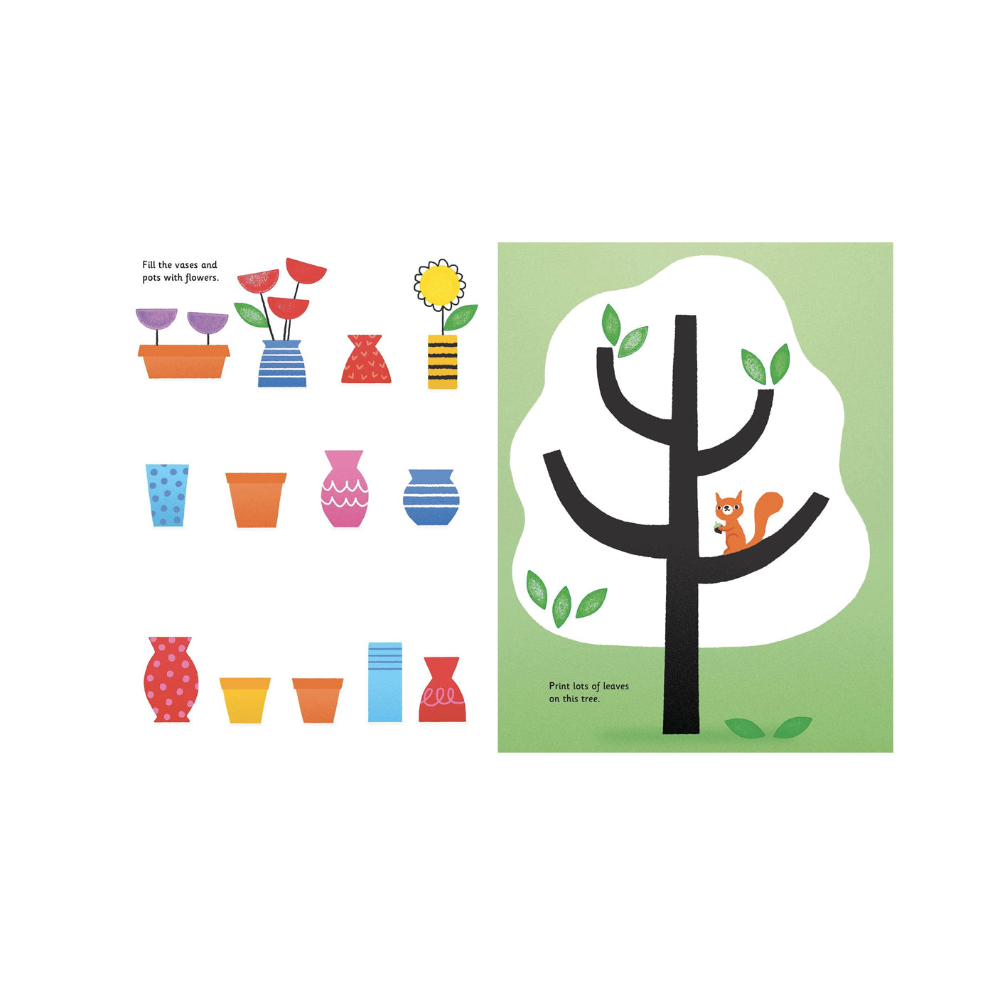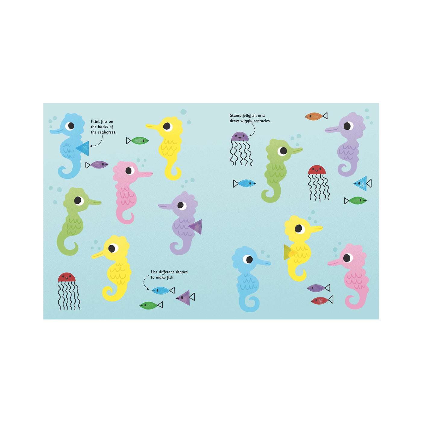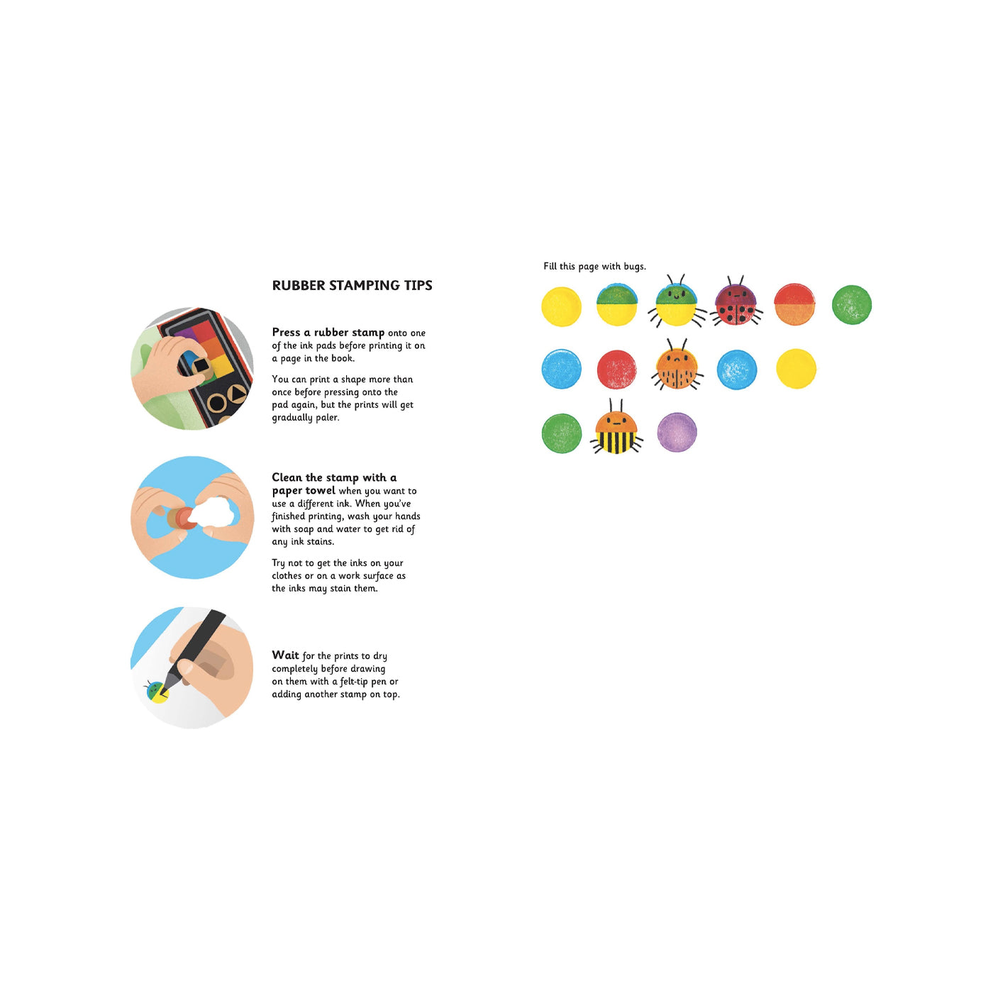 Eğlenceli resimlerle dolu bu etkinlik kitabında her sayfadaki resimleri tamamlamak için altı renk mürekkep pedi ve altı farklı şekilde damga seti bulunuyor. Çocuklar resimleri tamamlamak için adım adım talimatları takip edebilir veya şekilleri kullanarak dilediği şeyi çizebilirler. Hayvanlar, robotlar, bir prensesin balo elbisesi gibi farklı ve eğlenceli temaları doldurabilecekleri çok sayıda alan bulunuyor.