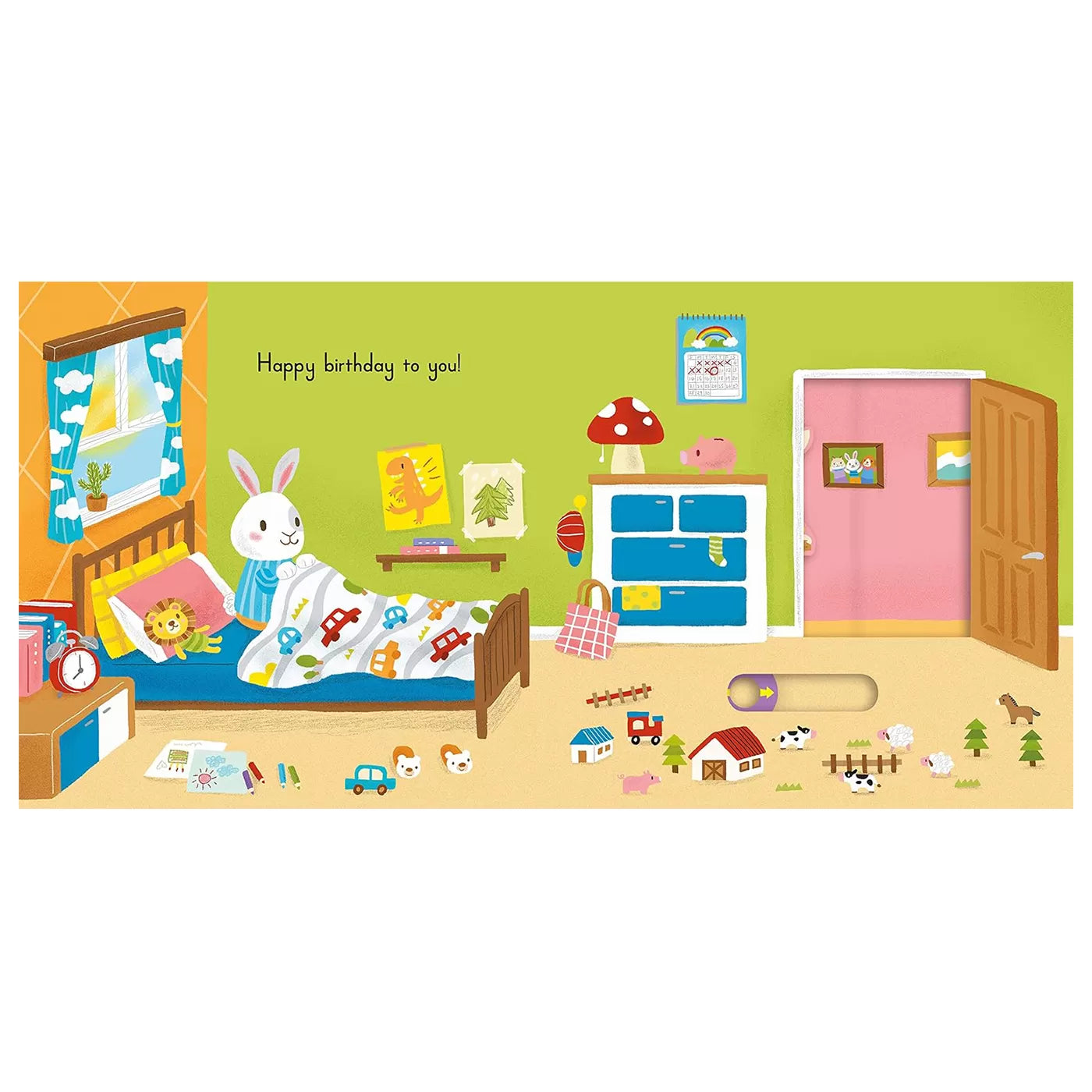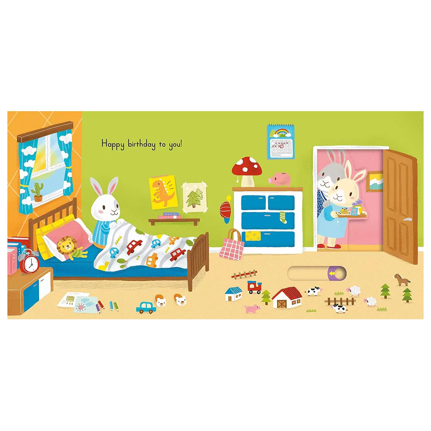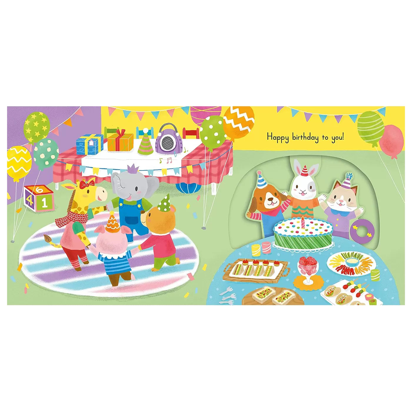 Mekanizmaları çevirerek ve iterek, doğum günü kutlamasına katılabilirsiniz. QR kodunu taratarak kitabı, happy birthday şarkısının entrümantal ve vokal versiyonu eşliğinde de okuyabilirsiniz.
