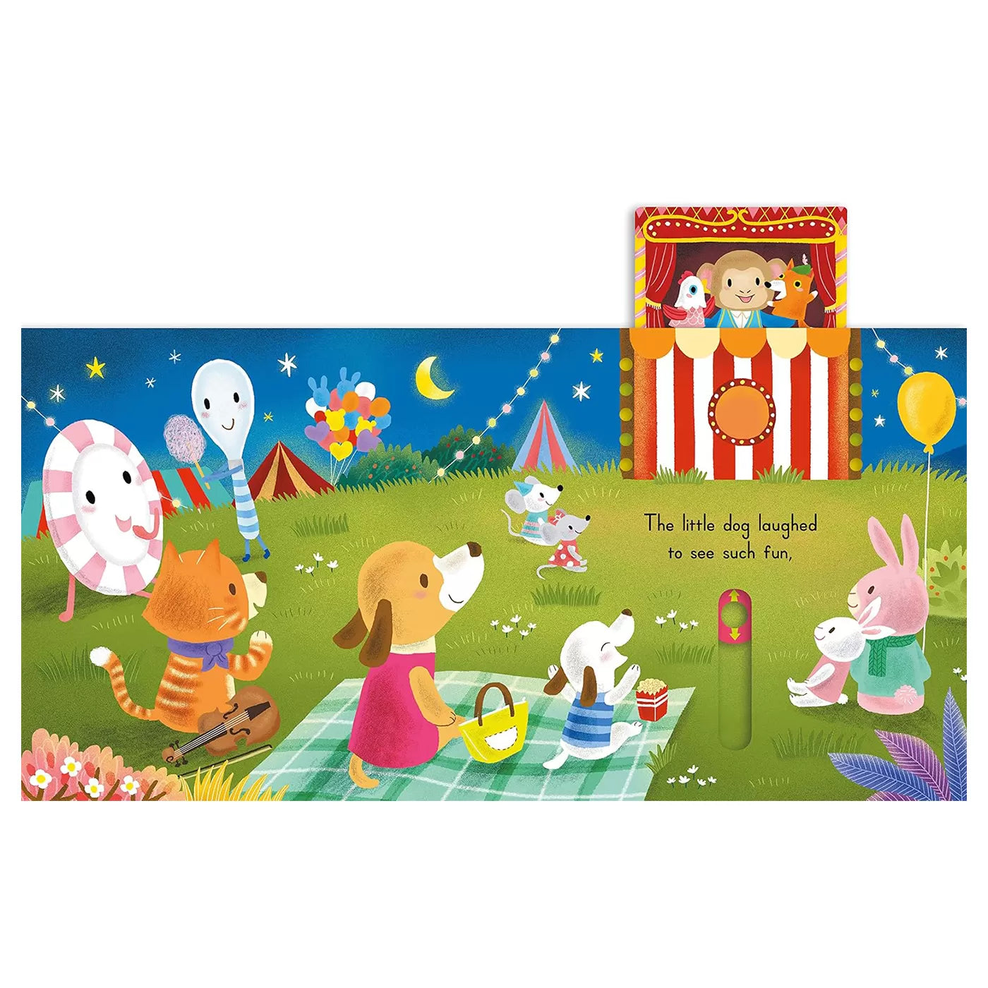 Küçük ellerin kullanması kolay olan kaydırmalı mekanizmalara sahip olan bu kitaptaki hikayeye,