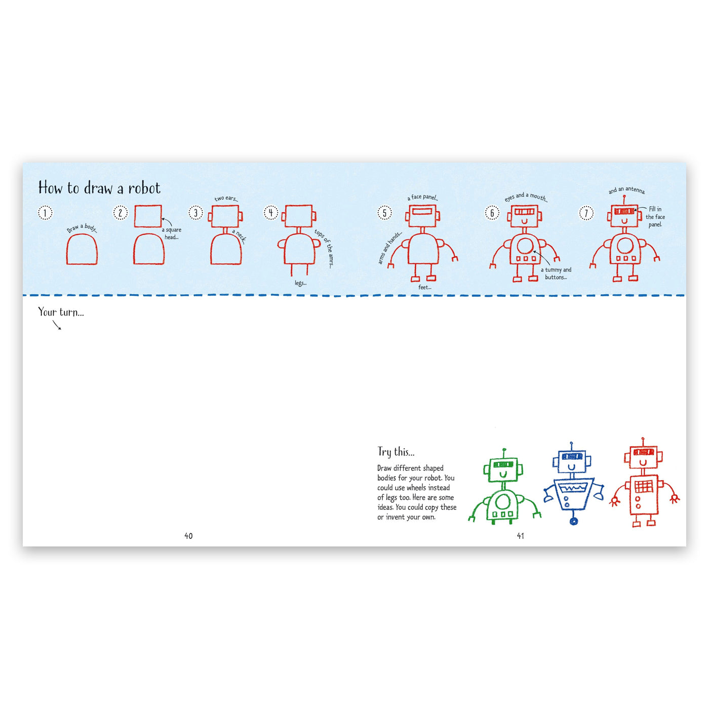 Roketlerden robotlara, maymunlardan canavarlara bu ilham verici çizim kitabındaki adım adım talimatları izleyerek, çocuklar eğlenceli figürleri nazıl çizeceklerini öğreniyorlar. Kendi çizimlerini uygulamak için de kitapta bolca yer var.