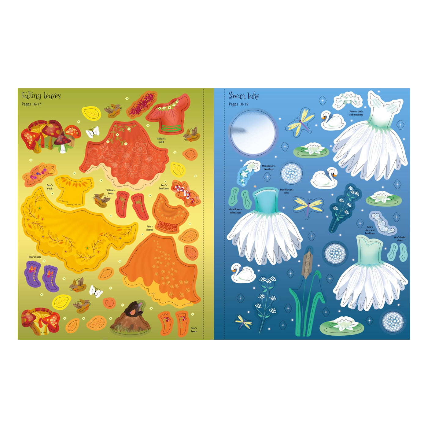 Bu muhteşem kitapla, periler diyarında kanat çırpan oyuncak bebekleri giydirin. Bebekleri muhteşem kıyafetler ve aksesuarlarla giydirmek için çok sayıda çıkartma ve büyülü sahneleri tamamlamak için süslemeler var.