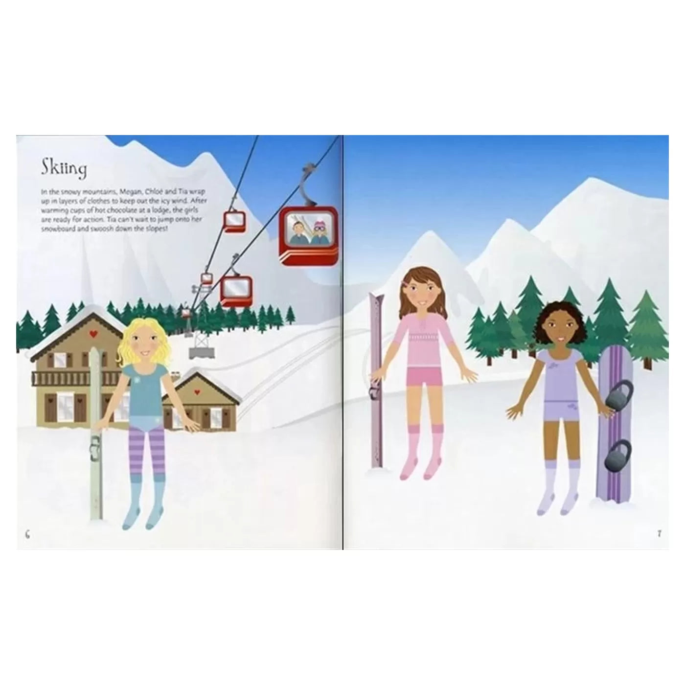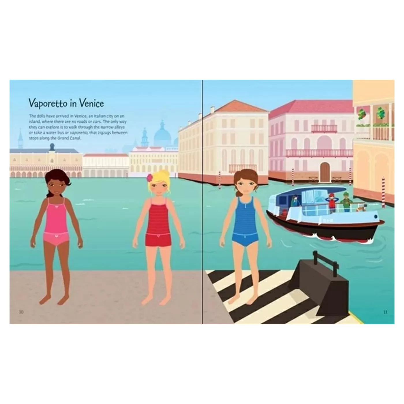 Kitaptaki karakterler dünyayı dolaşırken, havaalanında check-in yaparken, şehirlerarası trene binerken, San Francisco'da teleferiğe binerken, Venedik'te gezi yaparken onları giydirin. 250'den fazla güneş şapkası, kar kıyafeti, valiz, yürüyüş botu, yazlık elbise gibi çıkartma içerir.