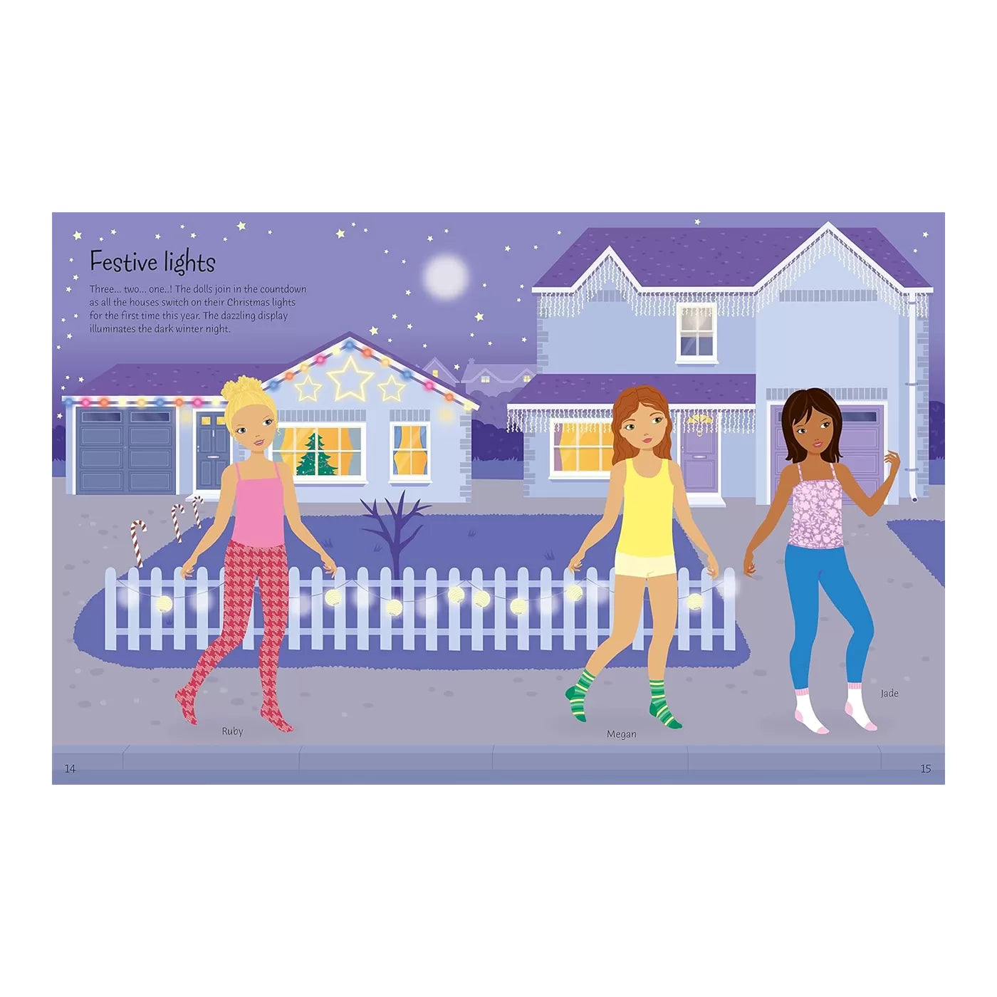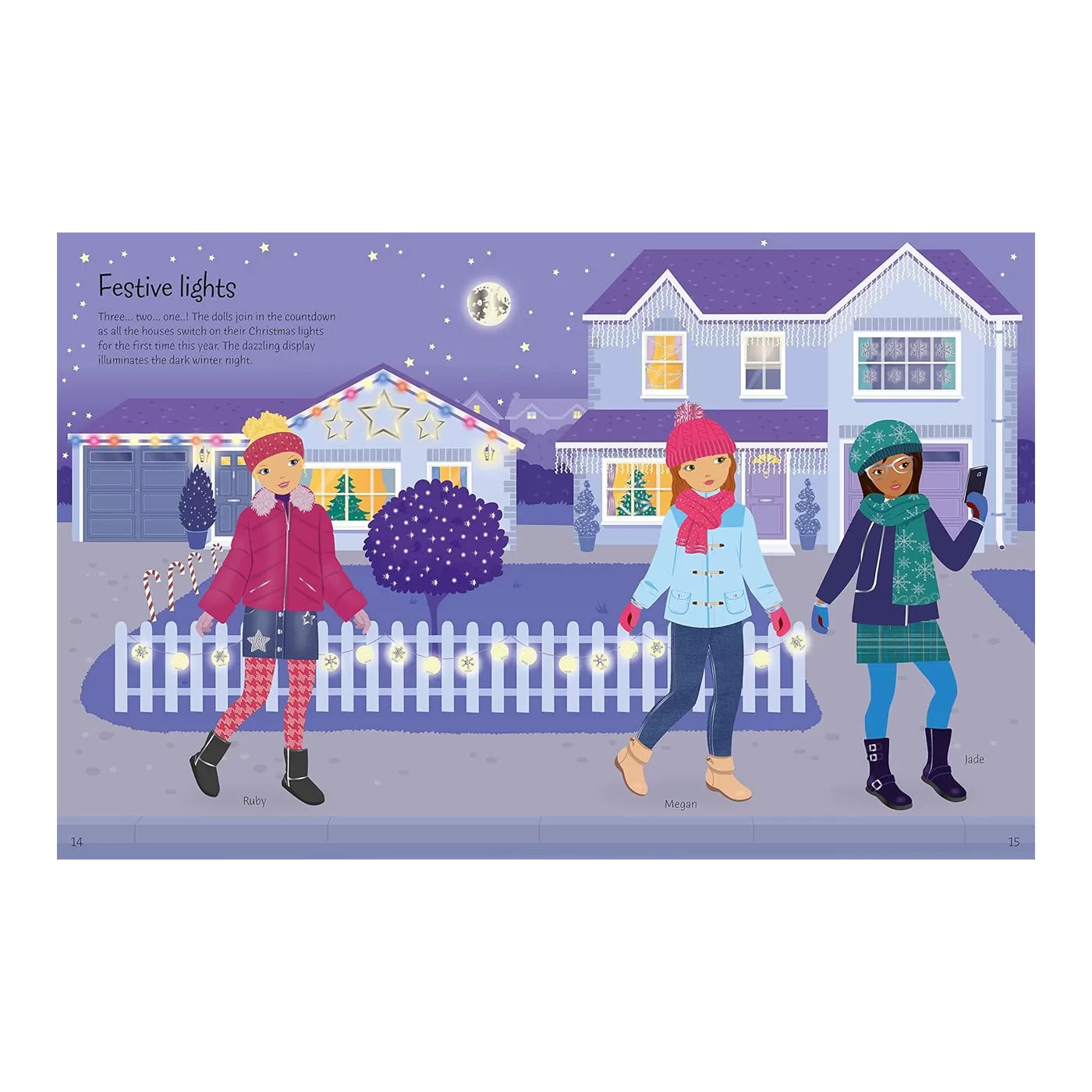 Kitaptaki karakterler birlikte Noel ağacını seçip süsleyin, karlı bir ormanda yürüyüşe çıkın, karlı bir öğleden sonra buz pateni yapın ve pırıltılı Noel ışıklarının yanmasını izleyin. Kıyafetlerini seçerken ve moda aksesuarlarını eklerken eğlenin.