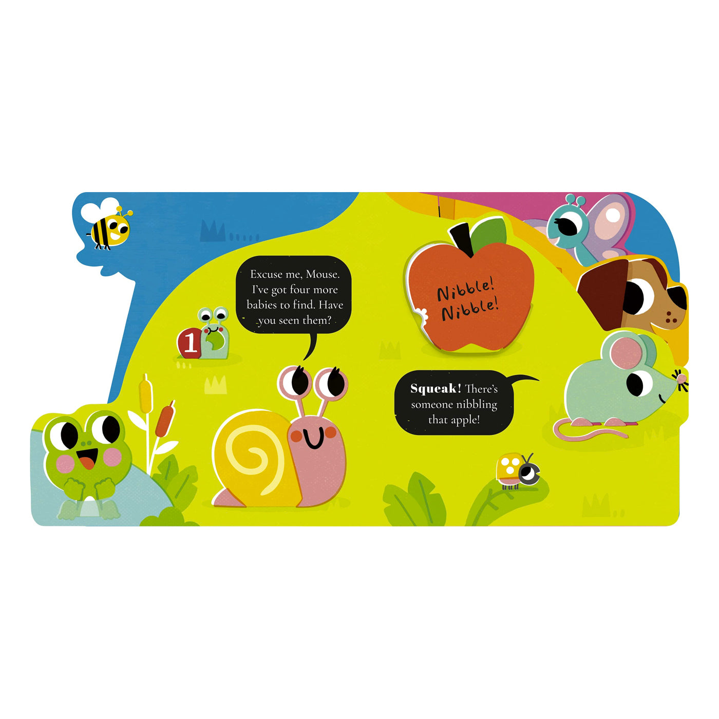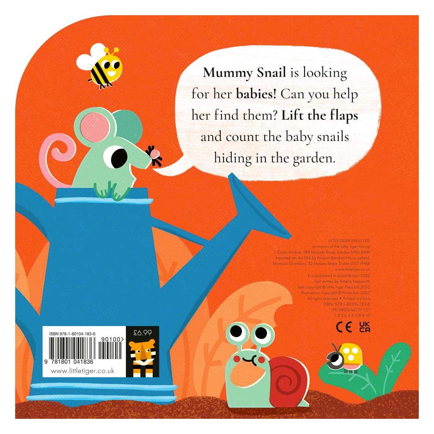 Bahçede kimin saklandığını keşfedin! Hayvan sever küçükler ve doğa tutkunları için mükemmel olan bu interaktif kitaptaki kapakçıkları kaldırın ve saymayı öğrenin! Anne Salyangoz, her biri kaldırılabilir bir kapağın altında saklanan beş bebeğini ararken, çocuklar bir saklambaç oyununa katılmaya davet edilir! Yol boyunca, küçük çocuklar buldukları salyangoz sayısı arttıkça beşe kadar saymayı öğrenebilirler.