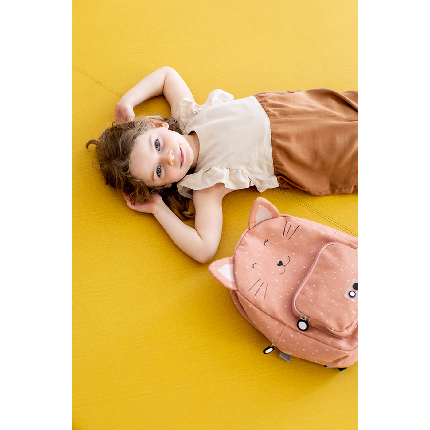 Bu sevimli sırt çantası ile çocuğunuz herhangi bir maceraya veya okula ilk seyahatine tamamen hazır! Sırt çantası, ayarlanabilir ve dolgulu omuz askılarına ve gittiğiniz her yerde kolayca tutup asmak için üstte kısa bir tutamağa sahiptir. Göğüs kemeri, omuz askılarının aşağı düşmesini önler. Sırt çantasının büyük bir bölmesi ve küçük bir ön cebi vardır, burada küçük bir aperatifi güzelce saklayabilirsiniz. Ana ve ön cepte, çocukların sırt çantasını kolayca açıp kapatmalarını sağlayan bir fermuar bulunur. Seyahat arkadaşınızı kaybetmemeniz için çantanın iç kısmında isim etiketi bulunmaktadır. Ayrıca sırt çantası su tutmaz ve çamaşır makinesinde hafif durulama ile yıkanabilir. Ancak, çantayı ne kadar çok yıkarsanız, o kadar az su itici olacağını unutmayın.