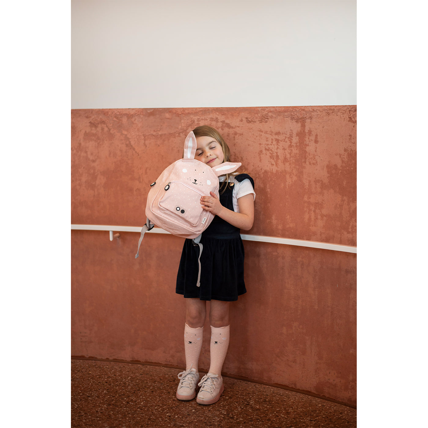 Bu sevimli sırt çantası ile çocuğunuz herhangi bir maceraya veya okula ilk seyahatine tamamen hazır! Sırt çantası, ayarlanabilir ve dolgulu omuz askılarına ve gittiğiniz her yerde kolayca tutup asmak için üstte kısa bir tutamağa sahiptir. Göğüs kemeri, omuz askılarının aşağı düşmesini önler. Sırt çantasının büyük bir bölmesi ve küçük bir ön cebi vardır, burada küçük bir aperatifi güzelce saklayabilirsiniz. Ana ve ön cepte, çocukların sırt çantasını kolayca açıp kapatmalarını sağlayan bir fermuar bulunur. Seyahat arkadaşınızı kaybetmemeniz için çantanın iç kısmında isim etiketi bulunmaktadır. Ayrıca sırt çantası su tutmaz ve çamaşır makinesinde hafif durulama ile yıkanabilir. Ancak, çantayı ne kadar çok yıkarsanız, o kadar az su itici olacağını unutmayın.