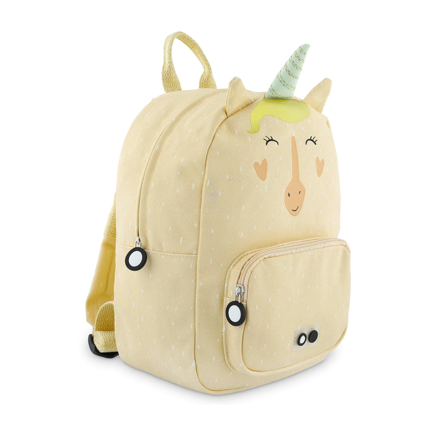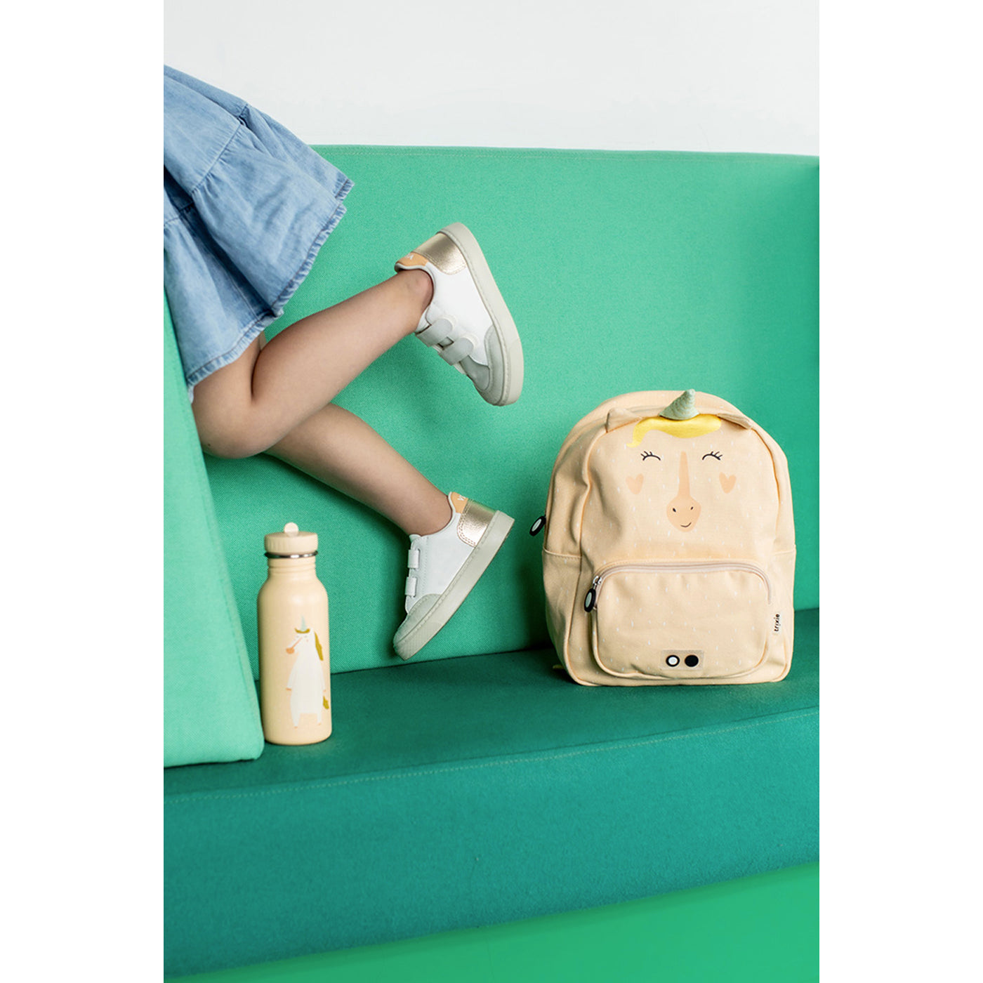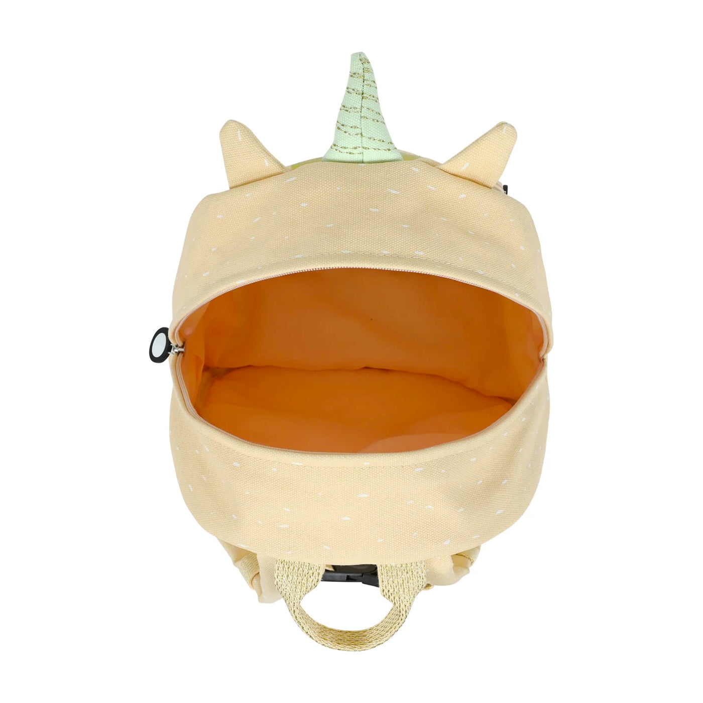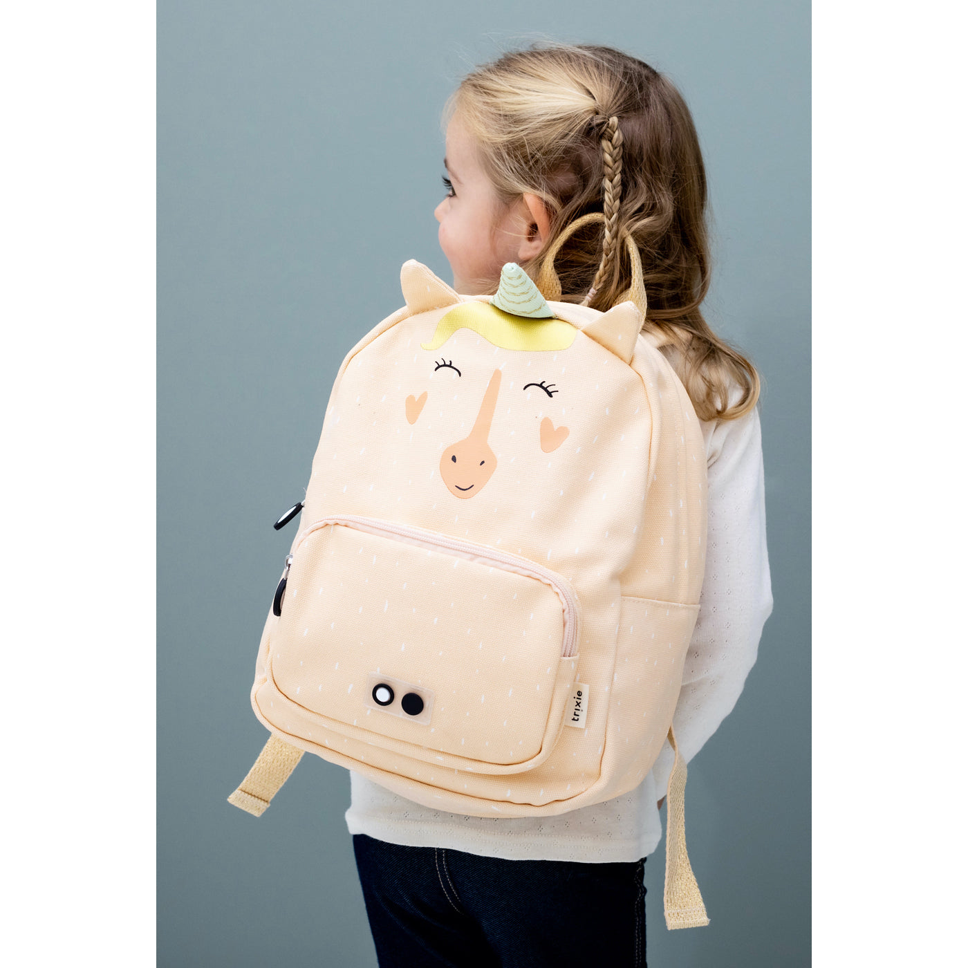 Bu sevimli sırt çantası ile çocuğunuz herhangi bir maceraya veya okula ilk seyahatine tamamen hazır! Sırt çantası, ayarlanabilir ve dolgulu omuz askılarına ve gittiğiniz her yerde kolayca tutup asmak için üstte kısa bir tutamağa sahiptir. Göğüs kemeri, omuz askılarının aşağı düşmesini önler. Sırt çantasının büyük bir bölmesi ve küçük bir ön cebi vardır, burada küçük bir aperatifi güzelce saklayabilirsiniz. Ana ve ön cepte, çocukların sırt çantasını kolayca açıp kapatmalarını sağlayan bir fermuar bulunur. Seyahat arkadaşınızı kaybetmemeniz için çantanın iç kısmında isim etiketi bulunmaktadır. Ayrıca sırt çantası su tutmaz ve çamaşır makinesinde hafif durulama ile yıkanabilir. Ancak, çantayı ne kadar çok yıkarsanız, o kadar az su itici olacağını unutmayın.
