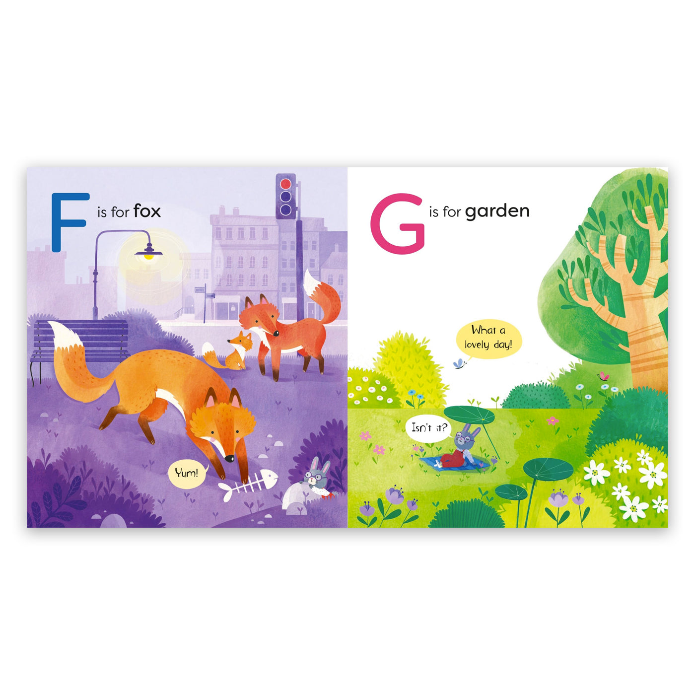 Bu kitap muhteşem çizimleri, parmak izlerini ve alfabetik metinleri bir araya getirerek küçük çocukların büyük harf şekillerini ve bunlarla ilişkili sesleri öğrenmelerine yardımcı oluyor.