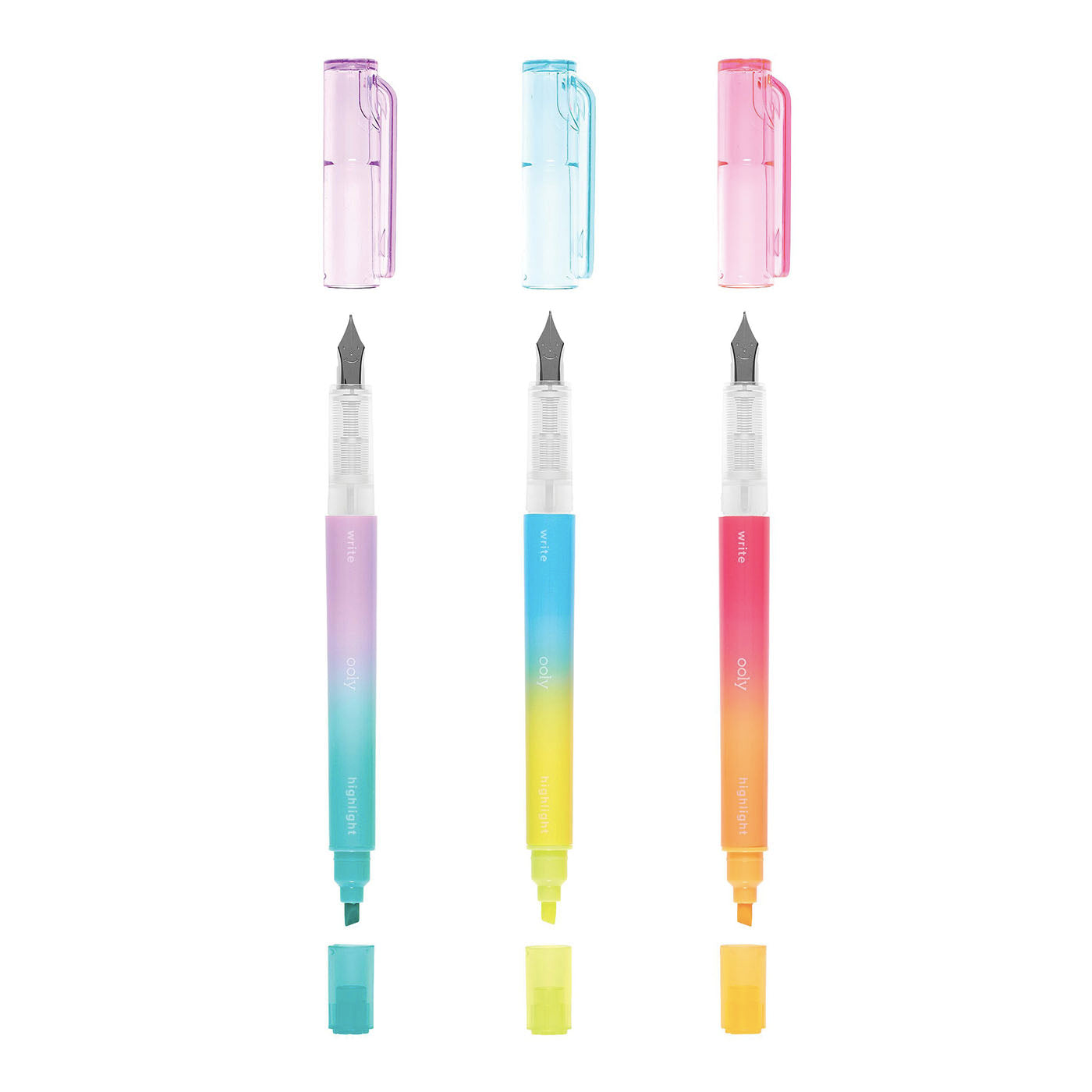 Ooly Writers Duo Çift Uçlu 3’lü Set - Dolma Kalem ve Highlighter