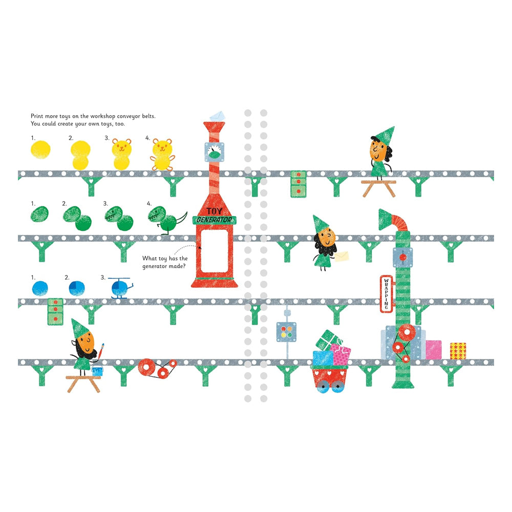 Fingerprint Activities Santa's Workshop, minik eller için yılbaşı neşesiyle dolu, eğlenceli bir aktivite kitabı. Bu kitap, çocukların kendi parmak izlerini kullanarak Noel Baba’nın elfleri, kardan adamlar, ren geyikleri, zencefilli kurabiyeler ve kış sahneleri yaratmasına olanak tanıyor. İçindeki yedi farklı renkli mürekkep pedi ve adım-adım yönlendirmeler sayesinde çocuklar yaratıcılıklarını kullanarak “parmak izi sanatı” yapıyor; hem eğleniyor hem de ince motor becerilerini geliştiriyor. Kim bilir — bu kitapla ilk Noel kartını da minik sanatçılar tasarlayabilir!