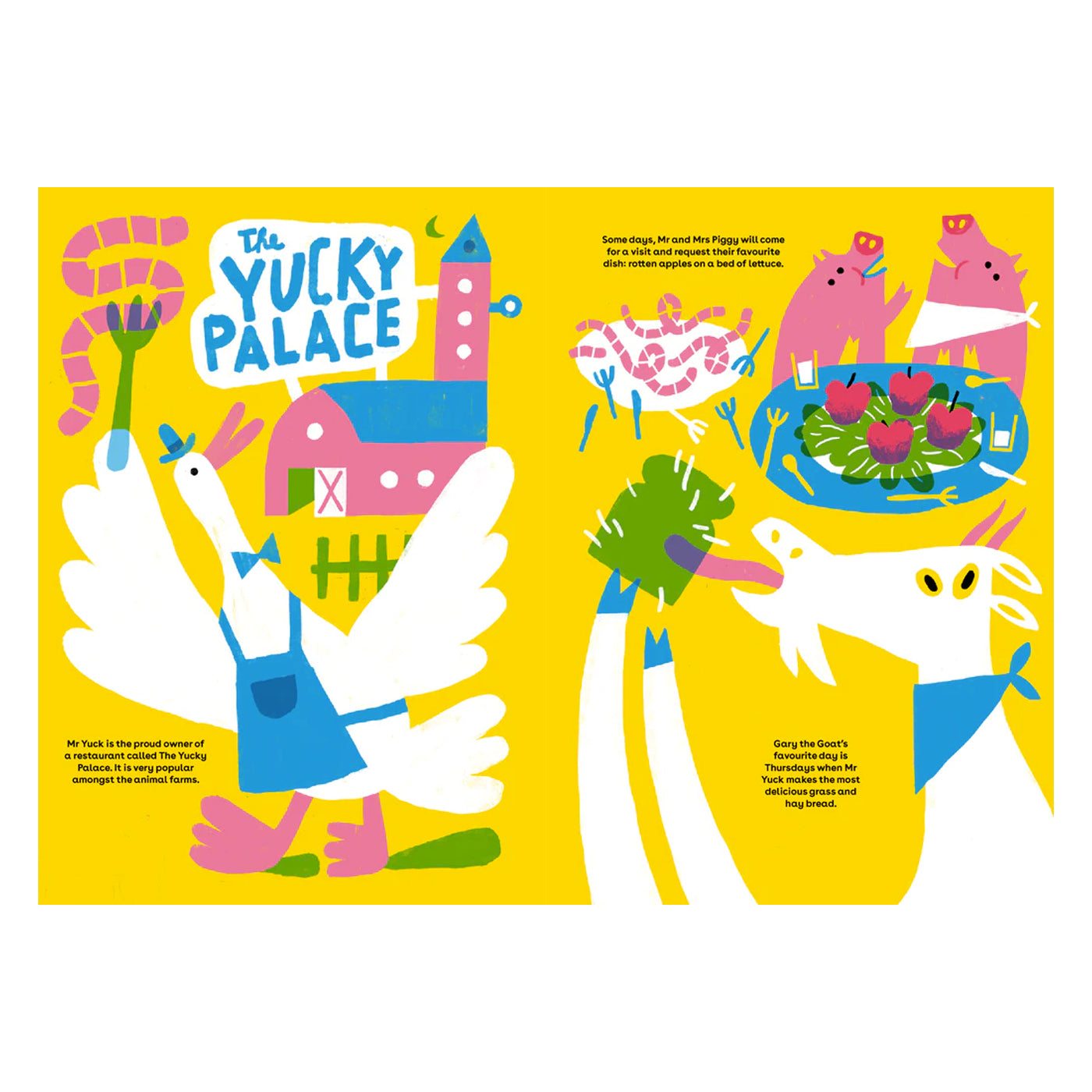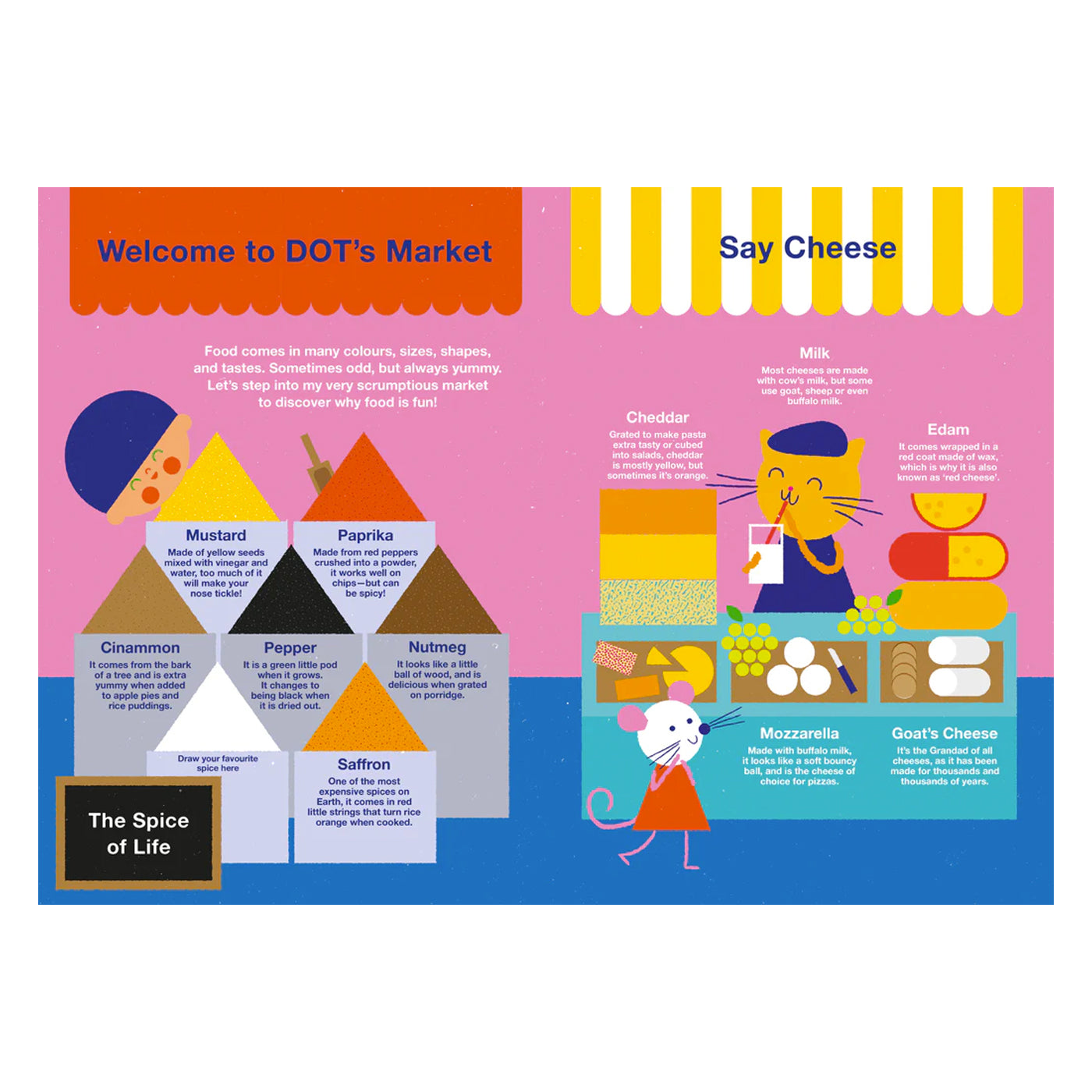 DOT bu sayısında küçük okuyucularını sebze, meyve, peynir ve hatta baharatlar hakkında her şeyi öğrenmek için bir gıda pazarına götürüyor. Aynı zamanda ormanlık alanın en sevilen çifti Bay ve Bayan Twig'le ve çiftliğin en sevilen şefi Bay Yuck ile tanıştırıyor.