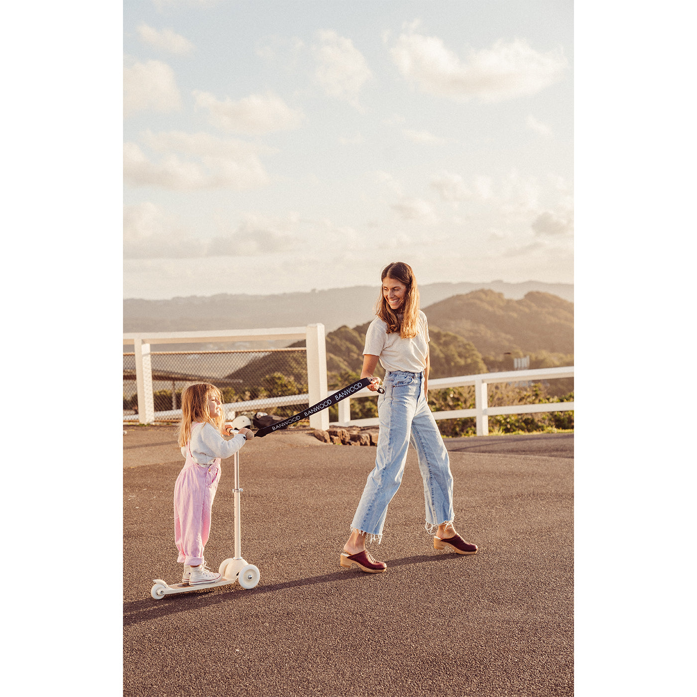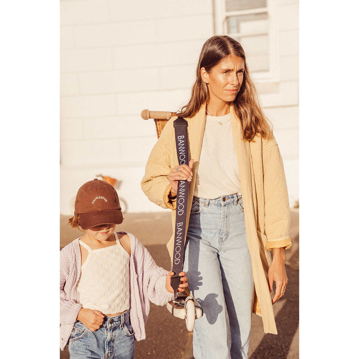 Minimalist bir tarza sahip olan Banwood taşıma askısı, denge bisikletleri ve scooter'lar ile kolayca kullanılabilir. Dayanıklı dacron (polyester) malzemeden yapılmıştır. Kayış üzerinden şık bir Banwood logosu bulunmaktadır. Vegan deri detayları içerir.