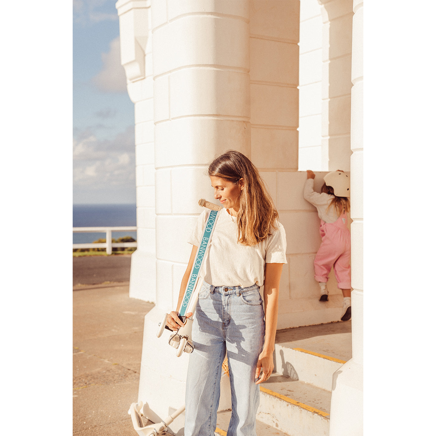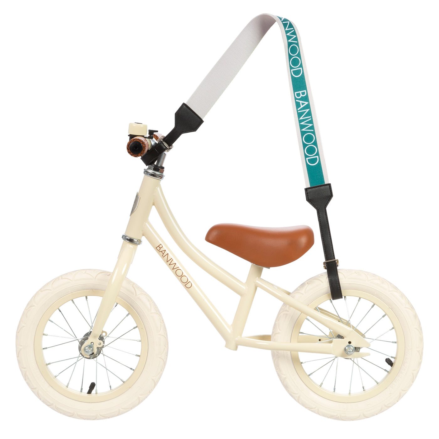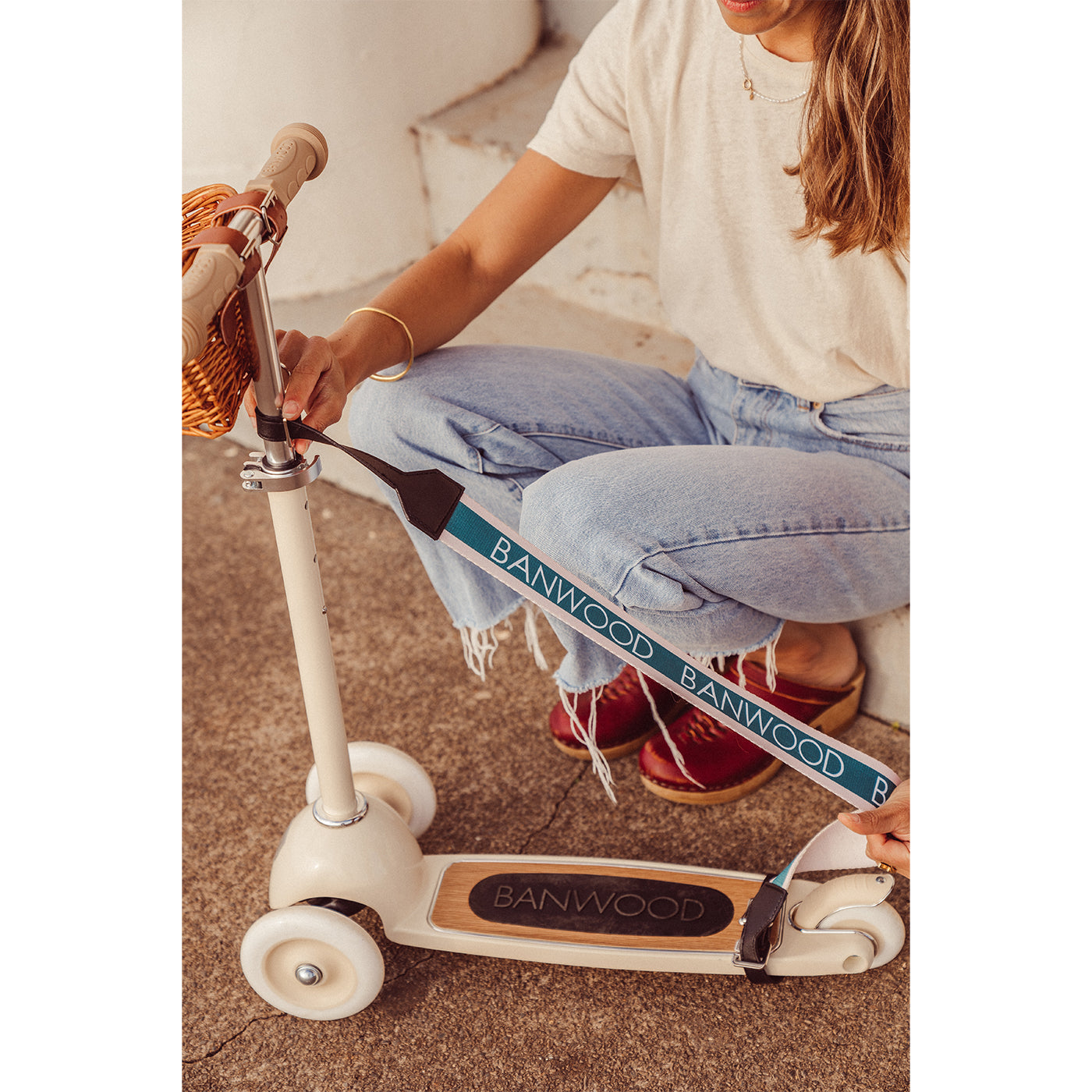 Minimalist bir tarza sahip olan Banwood taşıma askısı, denge bisikletleri ve scooter'lar ile kolayca kullanılabilir. Dayanıklı dacron (polyester) malzemeden yapılmıştır. Kayış üzerinden şık bir Banwood logosu bulunmaktadır. Vegan deri detayları içerir.