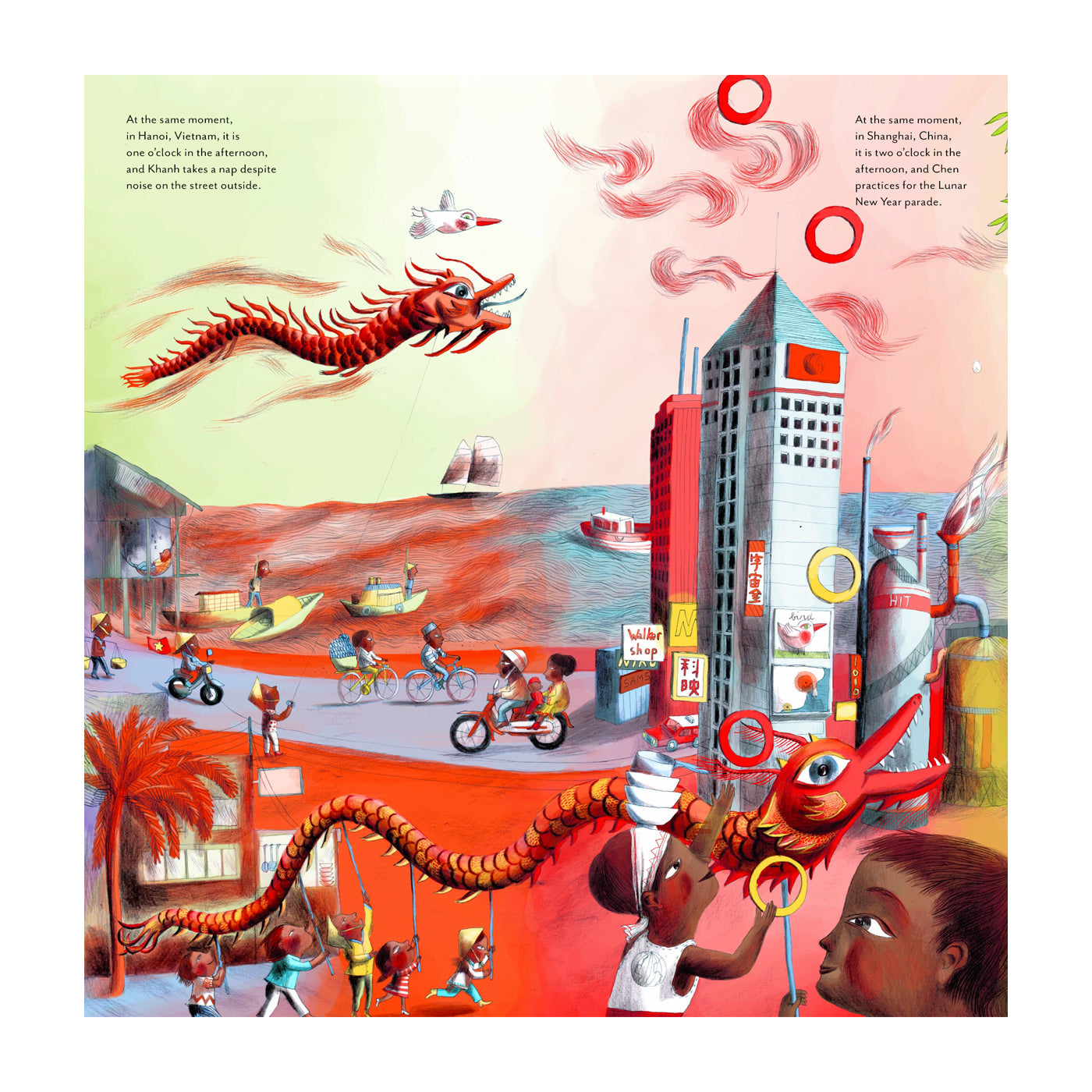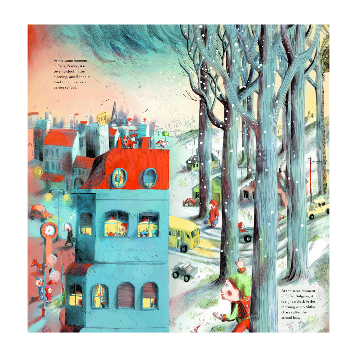 Dünyanın farklı yerlerinde 24 saatlik zaman dilimi içinde acaba neler oluyor? Benedict Paris'te sıcak çikolata içiyor, Mitko Sofya'da okul otobüsünü kovalıyor, Khanh Hanoi'de biraz kestiriyor! Çocuklar bu farklı karakterlerle dünyanın farklı köşelerine konuk olarak, zaman dilimleri hakkında bilgi ediniyor.