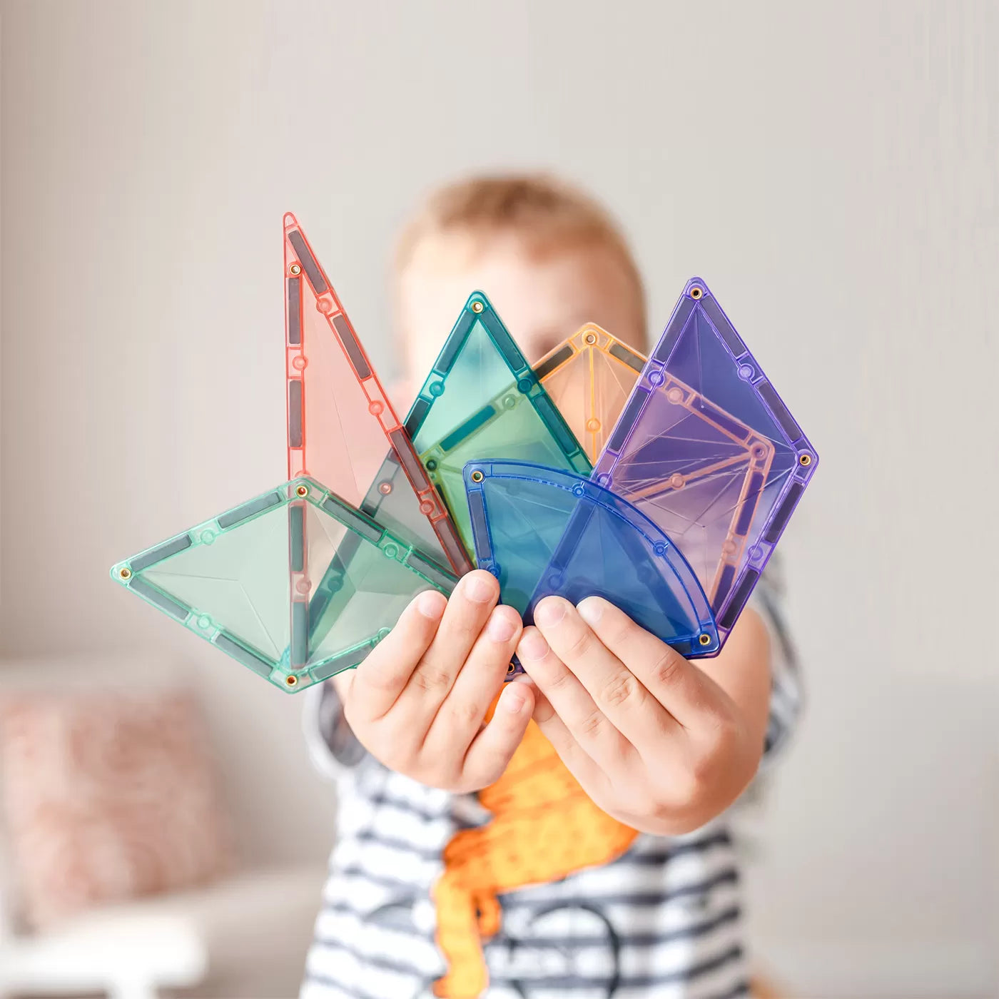 Büyük üçgenler, dik açılı üçgenler, çeyrek daireler, beşgenler, yamuklar ve eşkenar dörtgenler gibi özel mıknatıslı şekiller içeren bu paket, CONNETIX ile tasarım ve oyun olasılıklarını artıyor. Kesirler, ölçüm, konum ve dönüşüm konularında daha derin matematiksel anlayışları teşvik ederken iki ve üç boyutlu tasarımlar için yeni olasılıklar sunuyor.