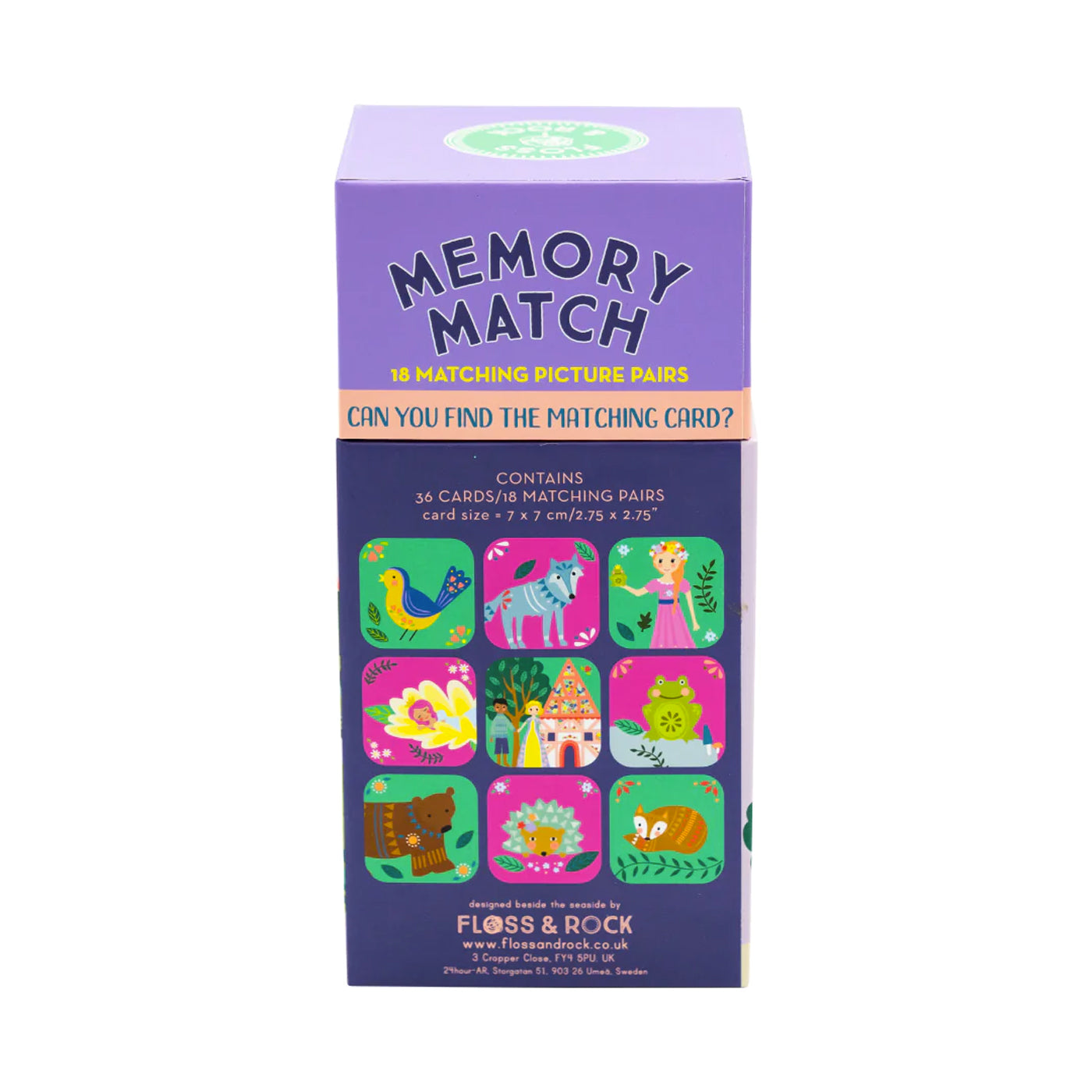 Floss & Rock Hafıza ve Eşleştirme oyunumuzla harika vakitler geçireceksiniz! Yeniden kullanılabilir harika bir kutuda gelen oyun 36 göz alıcı karta sahiptir. Floss & Rock Fairy Tale tasarımlı kartlar prensesler, prensler, kurbağalar, kirpiler, ayılar ve daha fazla görseli içerir. Parlak folyo kaplaması ve birbirinden güzel desenleriyle 18 eşleşen hafıza kart oyununu, güzel bir hediye seçeneği olarak da düşünebilirsiniz. İster tüm kartları yüzleri kapalı şekilde zemine dizerek sırayla ikişer olarak açarak eşleştirebilir, isterseniz de kartları oyuncular arasında dağıtarak sırasıyla açarak benzer olanları eşleştirip puan kazanabilirsiniz.