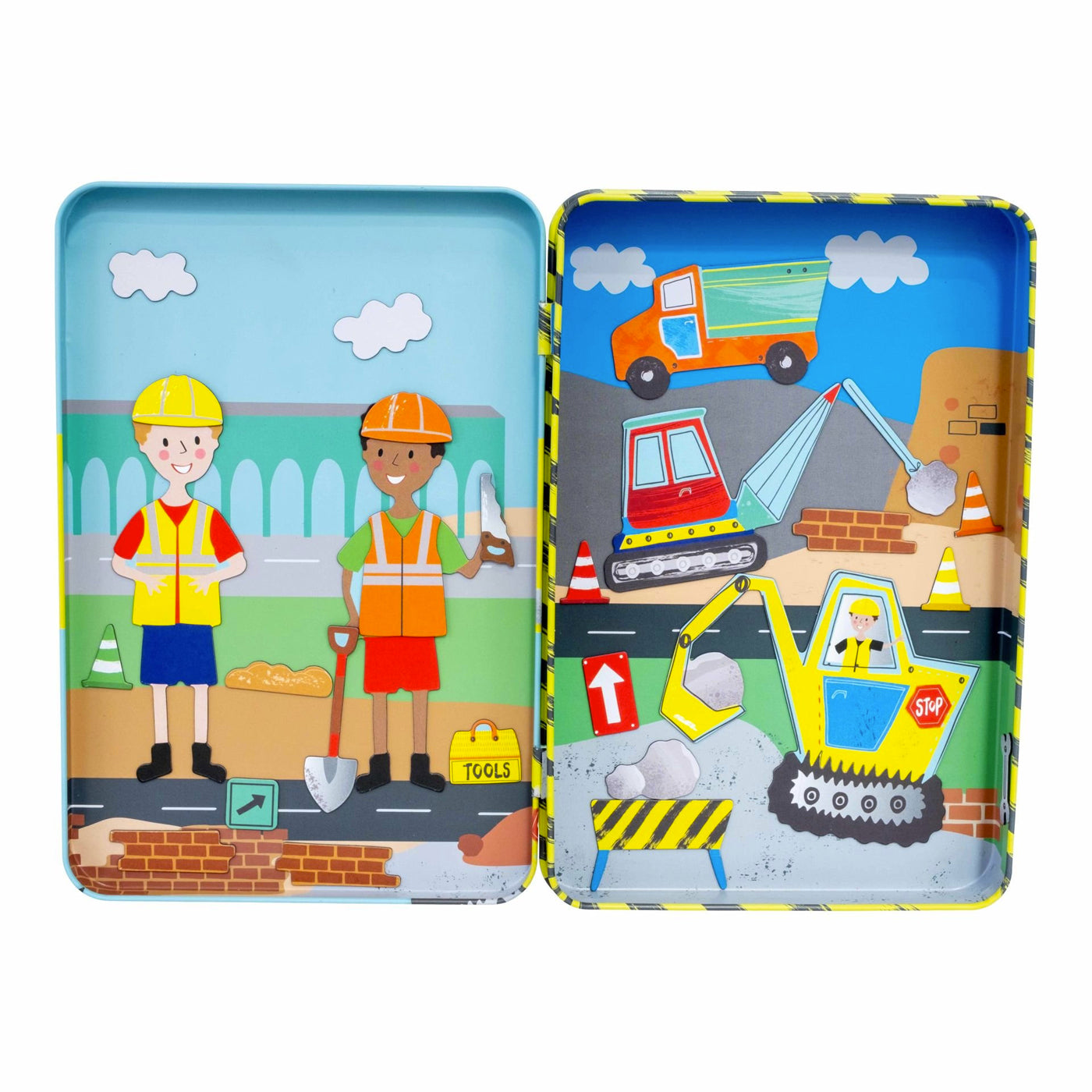 Taşınabilir mıknatıslı harika bir kutuda oyun zamanı eğlencesi! 3 adet mıknatıslı sayfa içerir, böylece 50'den fazla parlak, eğlenceli mıknatıslı parçayı kutunuzun içindeki 2 eğlenceli sahneye yapıştırarak eğlenebilir ve inşaatçılar, kazıcılar, kamyonlar ve çok daha fazlasıyla muhteşem resimler yaratarak hayal gücünüzü geliştirebilirsiniz. Soya mürekkepleriyle basılmış ve geri dönüştürülmüş malzemeler kullanılarak yapılmış mükemmel bir hediye seçeneğidir. Oynamayı bitirdiğinizde, manyetik kutu tüm parçalarınızı bir dahaki sefere kullanmak üzere güvenli bir şekilde saklar.