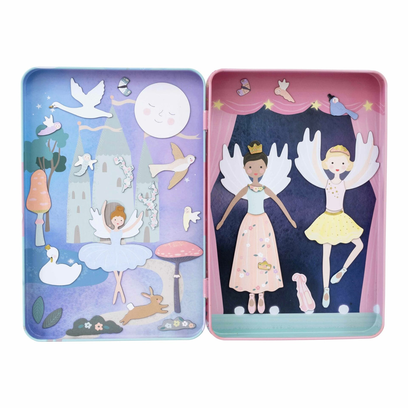 Taşınabilir mıknatıslı harika bir kutuda oyun zamanı eğlencesi! 3 adet mıknatıslı sayfa içerir, böylece 50'den fazla parlak, eğlenceli mıknatıslı parçayı kutunuzun içindeki 2 eğlenceli sahneye yapıştırarak eğlenebilir ve bale dansçıları ve çok daha fazlasıyla muhteşem resimler yaratarak hayal gücünüzü geliştirebilirsiniz. Soya mürekkepleriyle basılmış ve geri dönüştürülmüş malzemeler kullanılarak yapılmış mükemmel bir hediye seçeneğidir. Oynamayı bitirdiğinizde, manyetik kutu tüm parçalarınızı bir dahaki sefere kullanmak üzere güvenli bir şekilde saklar.