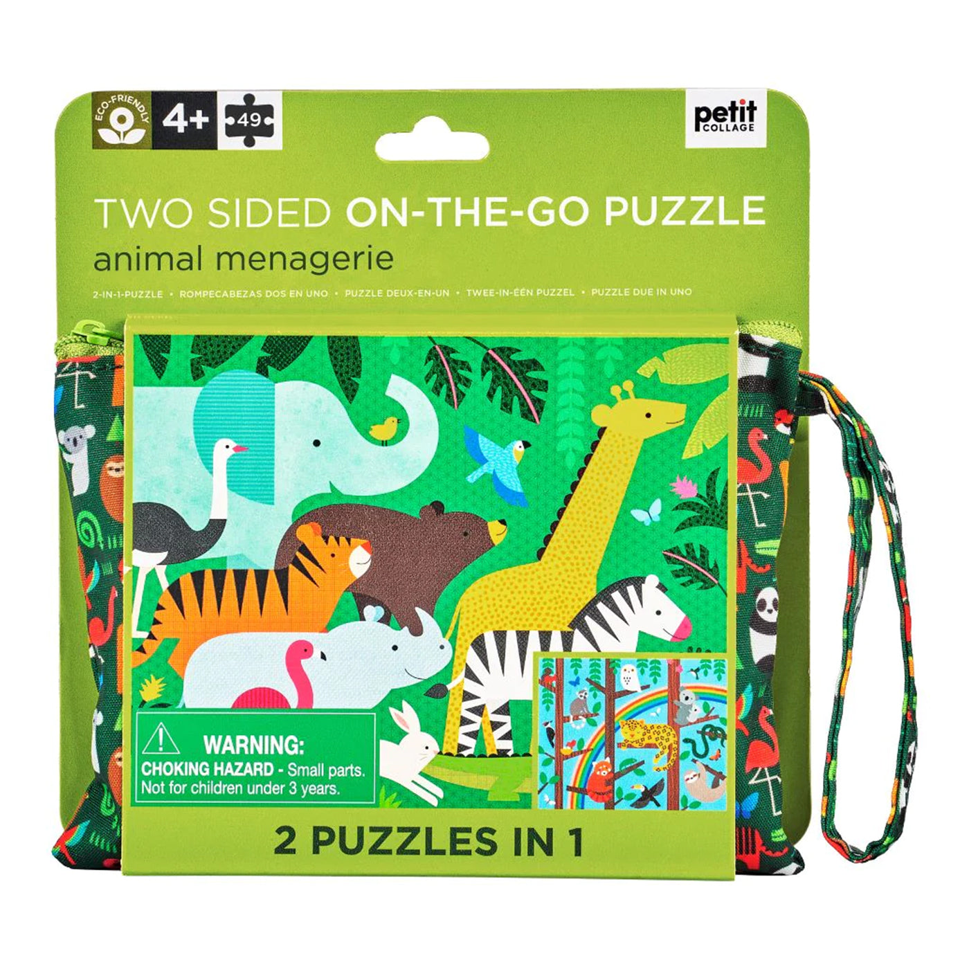 Petit Collage Taşınabilir Çantalı Çift Taraflı Yapboz - Animal Menagerie