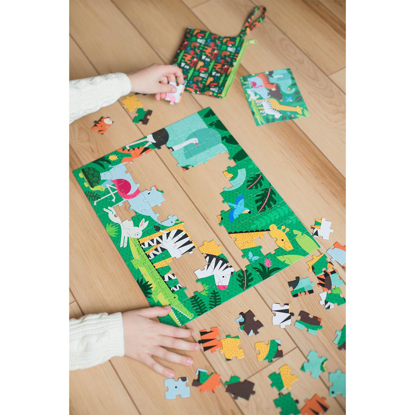 Hayvan temalı 49 parçalı çift taraflı bu yapboz taşınabilir saklama çantası sayesinde her türlü seyahatte yanınıza almanız için idealdir.