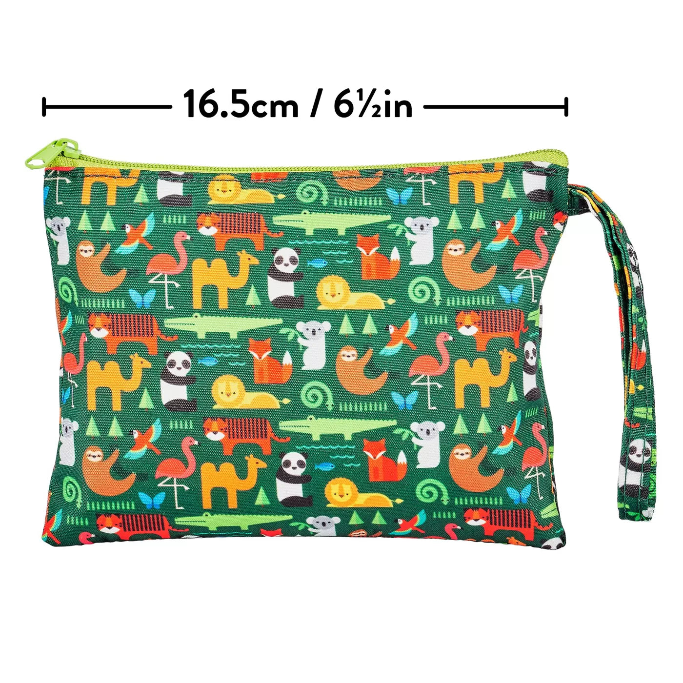 - %100 geri dönüştürülmüş polyester kumaştan yapılmış kullanışlı fermuarlı saklama çantası.