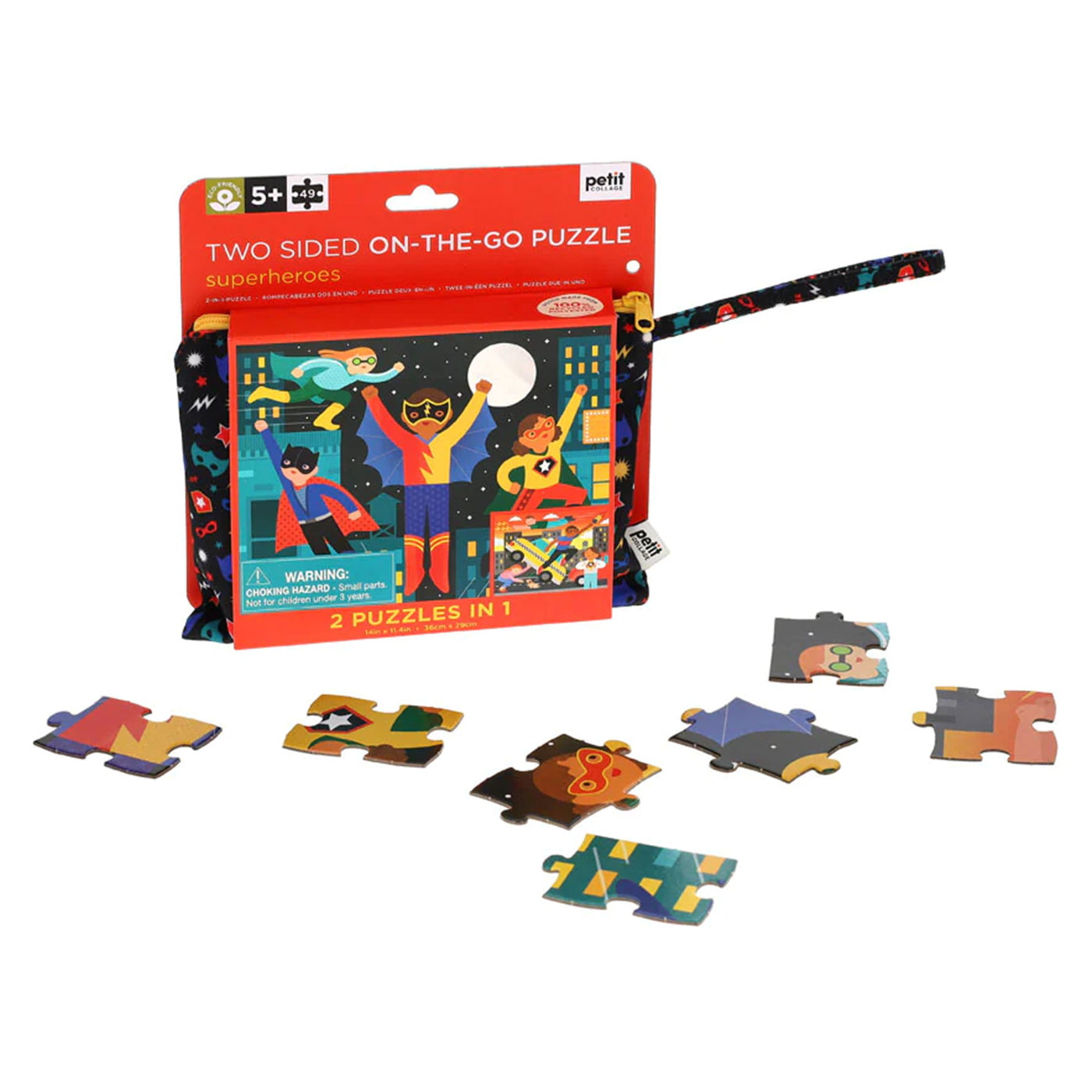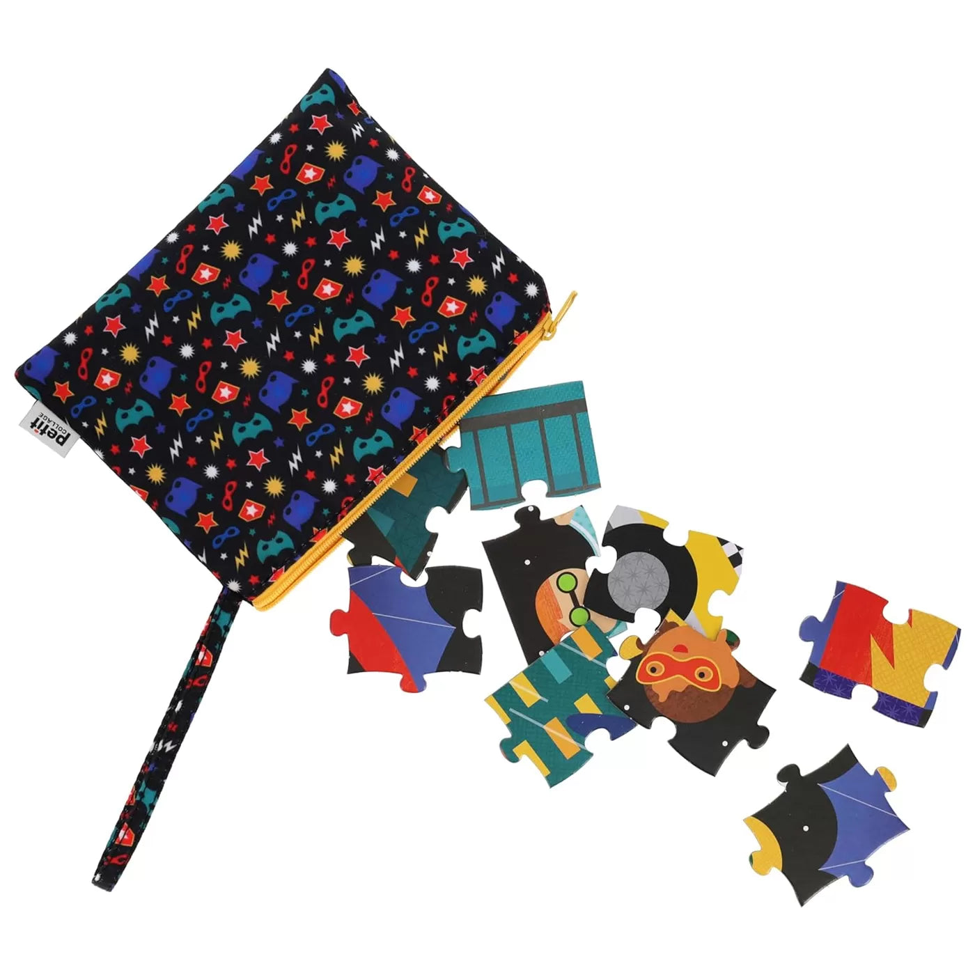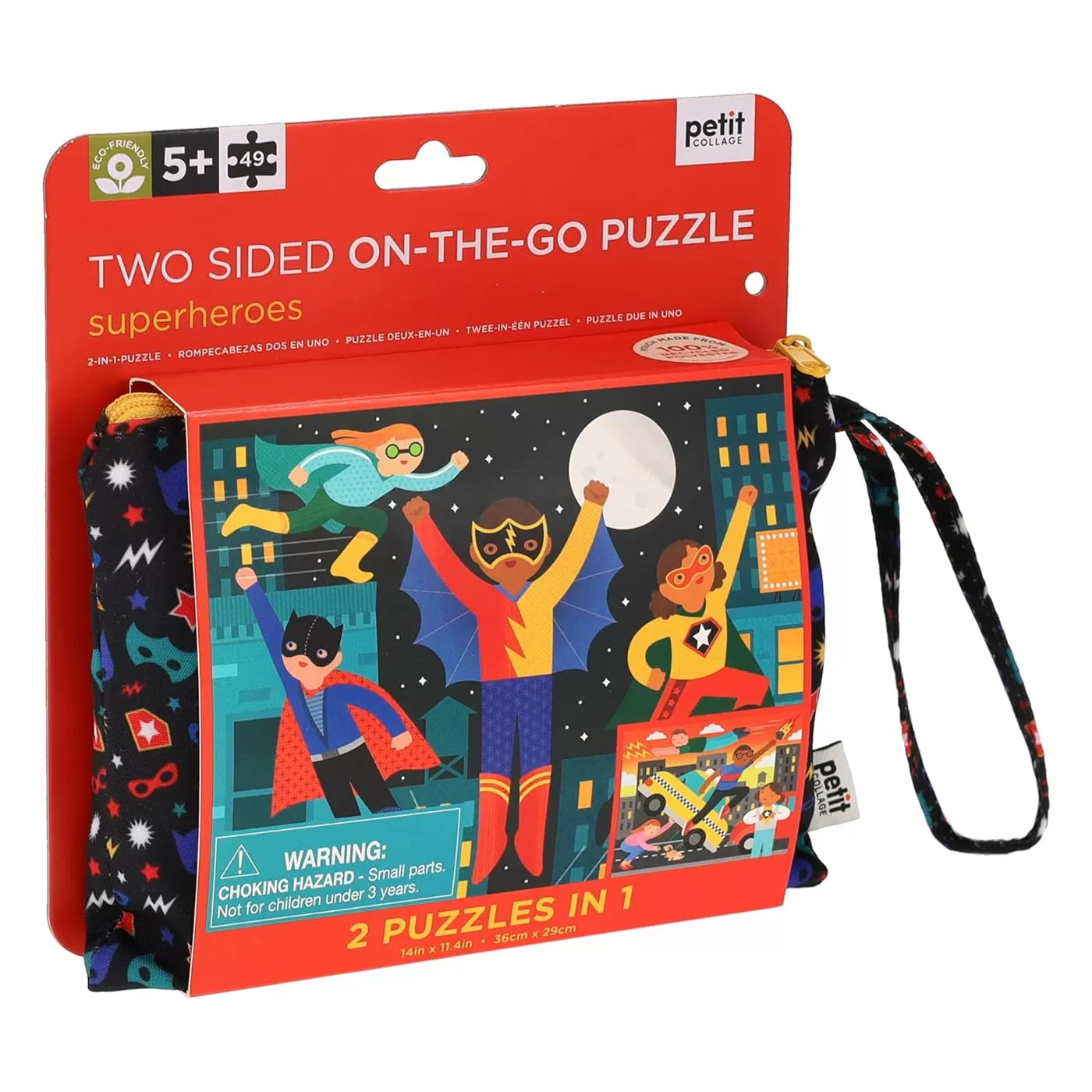 Petit Collage Taşınabilir Çantalı Çift Taraflı Yapboz - Superheroes