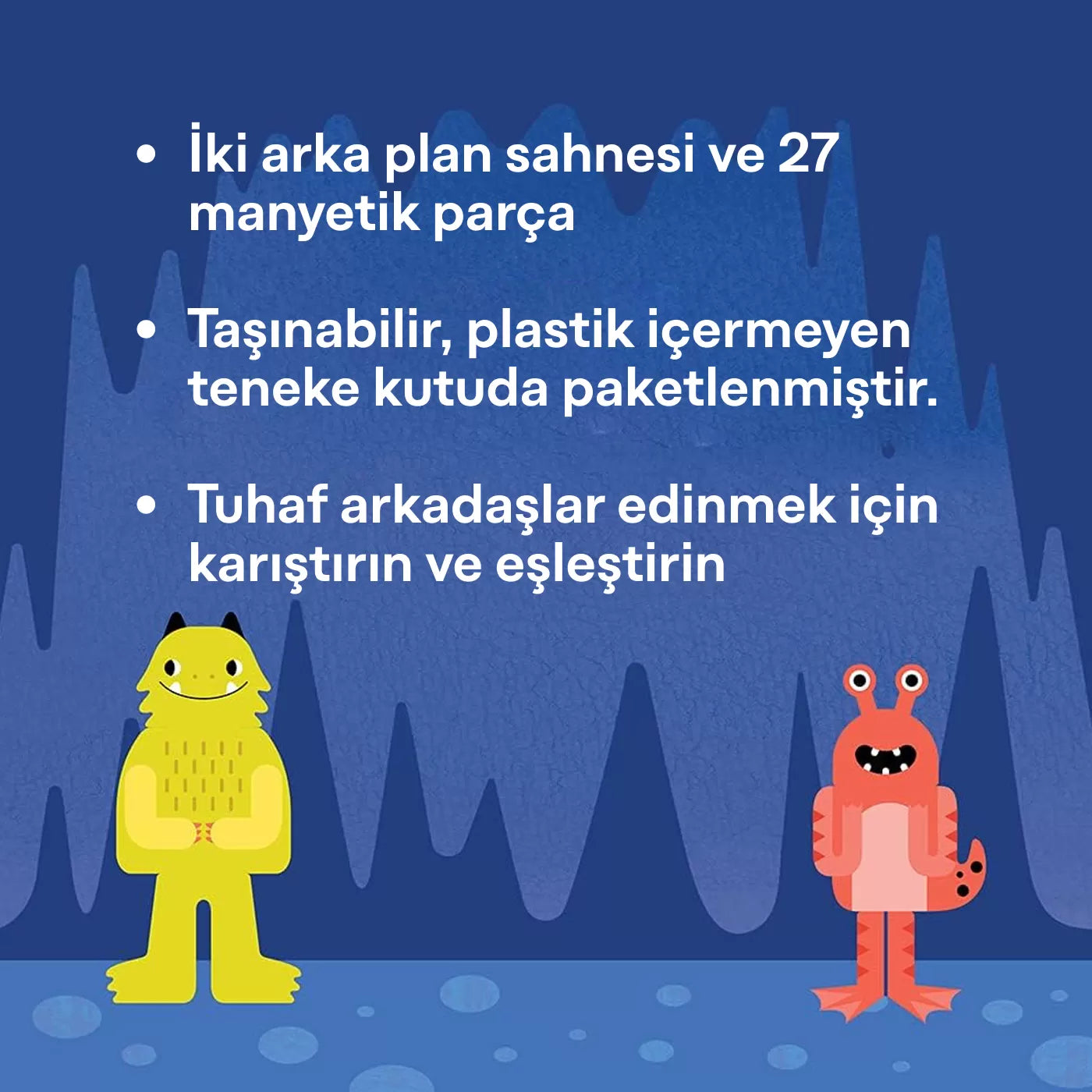 Canavarlar temalı bu oyun setinde 27 manyetik parçayı karıştırarak farklı karakterler oluşturun! Mıknatıslı parçaları karıştırın ve birleştirin ve 100’den fazla kombinasyonla ürkütücü ve şapşal canavarlar yaratın.
