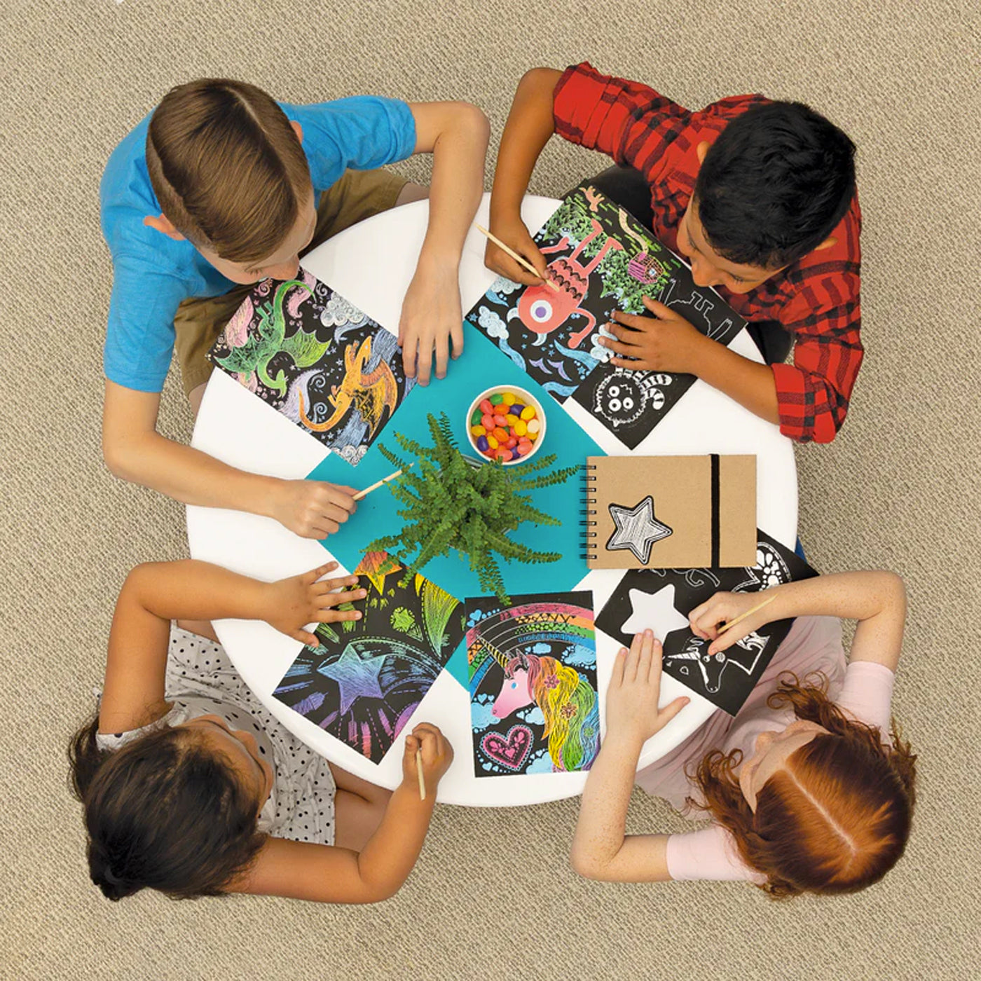 Okyanus temalı sanat kartlarındaki deniz canlılarını ortaya çıkarmak için yapmanız gereken tek şey yönergeleri takip etmek ve kartları kazamak. Çocuklar takip etmesi izlemesi son derece kolay olan 4 rehberli illüstrasyonla inanılmaz sanat eserleri ortaya çıkarabilir ya da kılavuz olmadan 2 gökkuşağı kartına ve 2 ışıltılı karta kendi tasarımlarını çizebilirler. Oynamak ve yeni karakterler yaratmak için kartları çerçeveleyebilir veya tasarımları kesebilirsiniz!