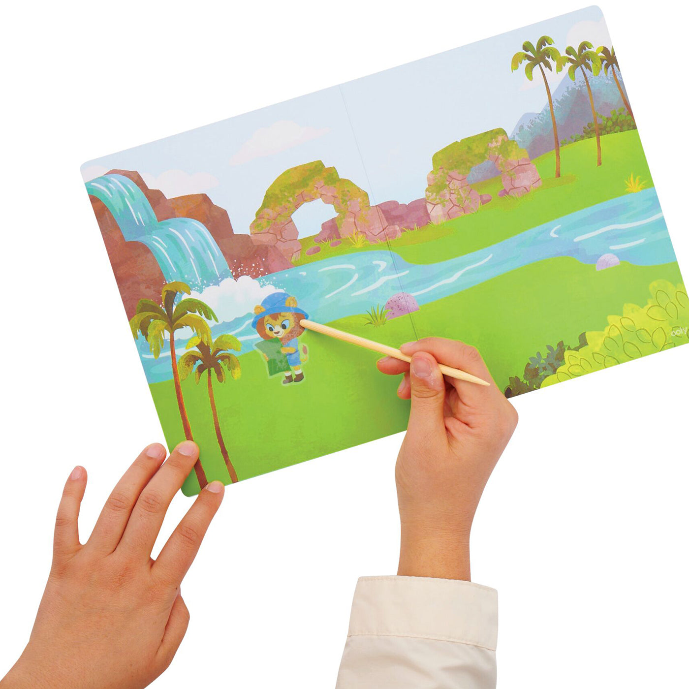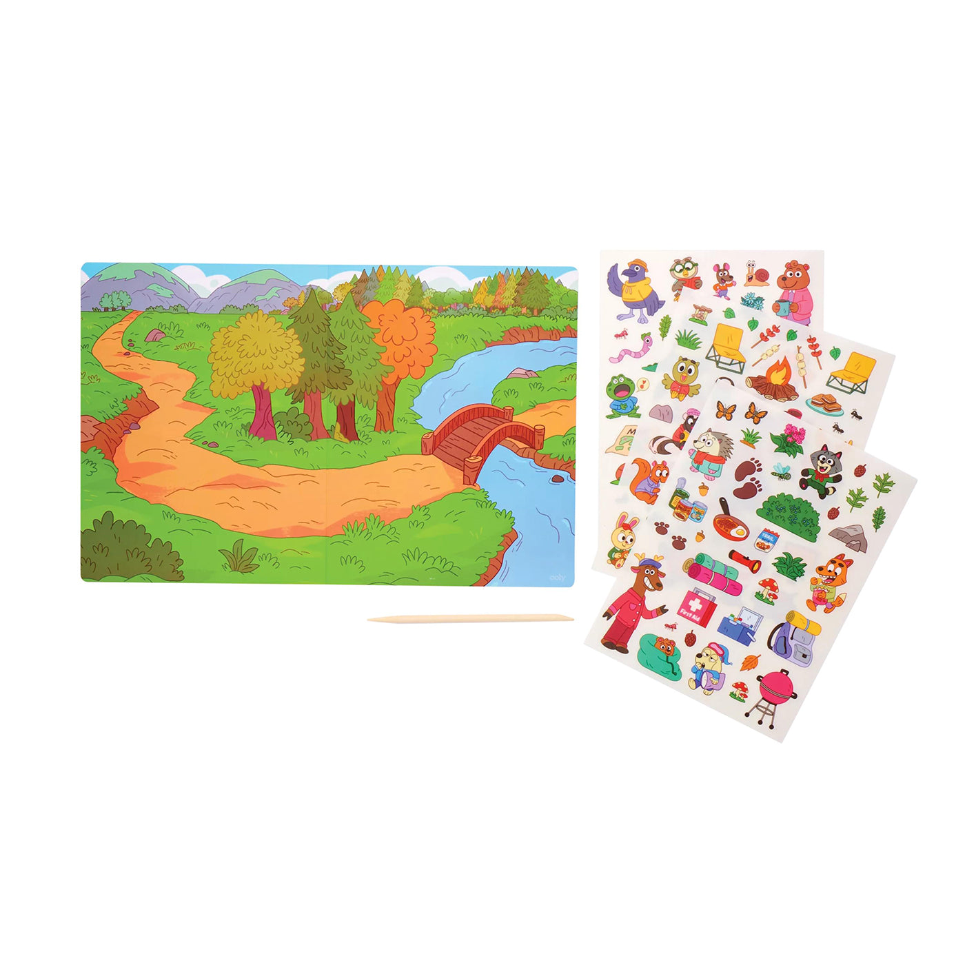 Bu transfer çıkartma seti ile kampta eğlenceli bir gün geçirin! Setin içinde yer alan oyun alanına dilediğiniz çıkartmayı tahta aparat yardımıyla uygulayın, sahneyi canlandırın; çıkartma seti ile hayal gücünüzü yıldızların altında bir geceyle şımartın. Sevimli karakterlerin kamp ateşinin yanında şarkı söylemesine izin verin veya ormanda yürüyüşe çıktıklarını hayal edin. Neye karar verirseniz verin hikaye tamamen size kalmış. Ayrıca hikayenize çift taraflı bir oyun tahtası da dahildir. Birlikte verilen ahşap aktarma aracıyla oyun tahtasına aktarabileceğiniz 60 kamp temalı çıkartmayla yalnızca hayal gücünüzle sınırlı bir dünya inşa edebilirsiniz.