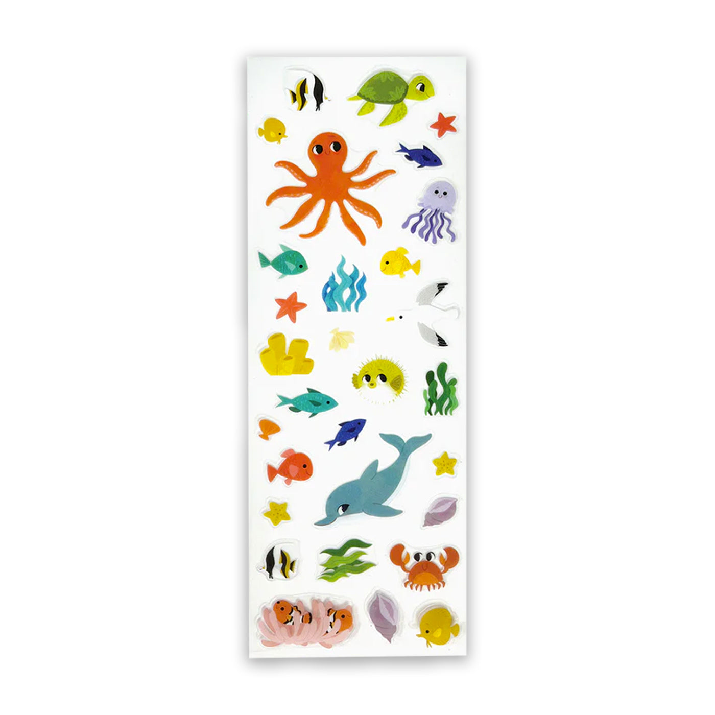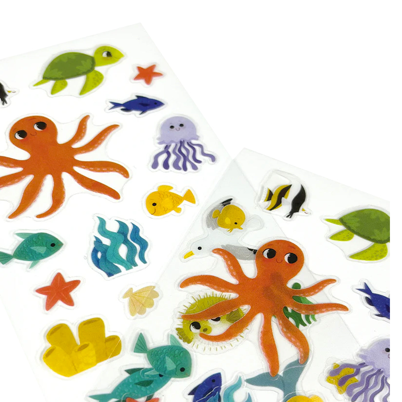 Okyanus canlıları temalı çıkartma sayfalarında balık, ahtapot, yengeç, deniz yosunu, martı gibi pek çok sevimli tasarım yer alıyor. Deniz kenarında geçirilen zamanları hatırlatan bu vinil çıkartmalar ile günlüklerinizi, defterlerinizi, kitap kapaklarınızı süsleyebilirsiniz.