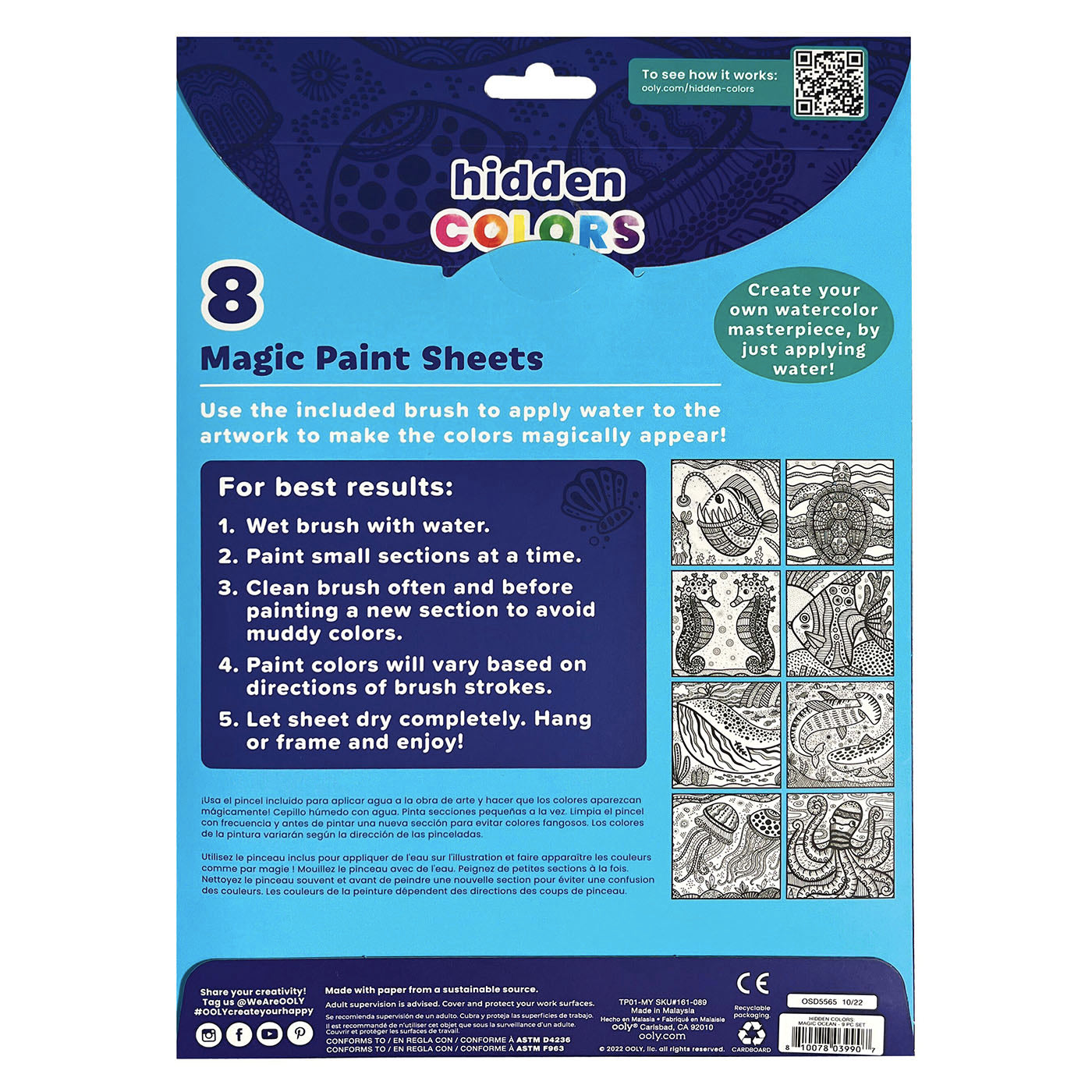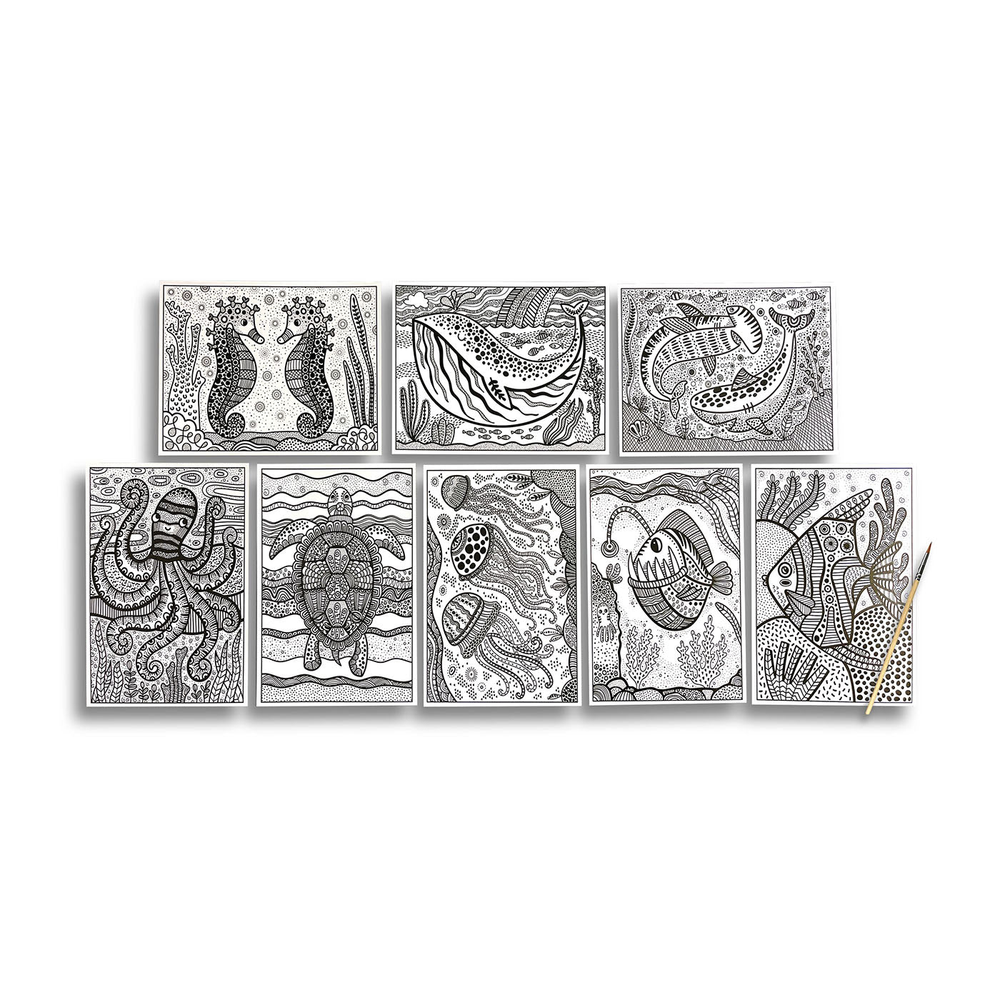 Bu sihirli boyama sayfalarıyla denizin altındaki gizli yaşamı keşfedin! Her saydada renklenmeyi bekleyen bir okyanus yaratığı yer alıyor. Setin içinden çıkan fırçayı suya batırıp resmin üzerinde gezdirdiğinizde sihirli bir şekilde müthiş renkler ortaya çıkıyor.