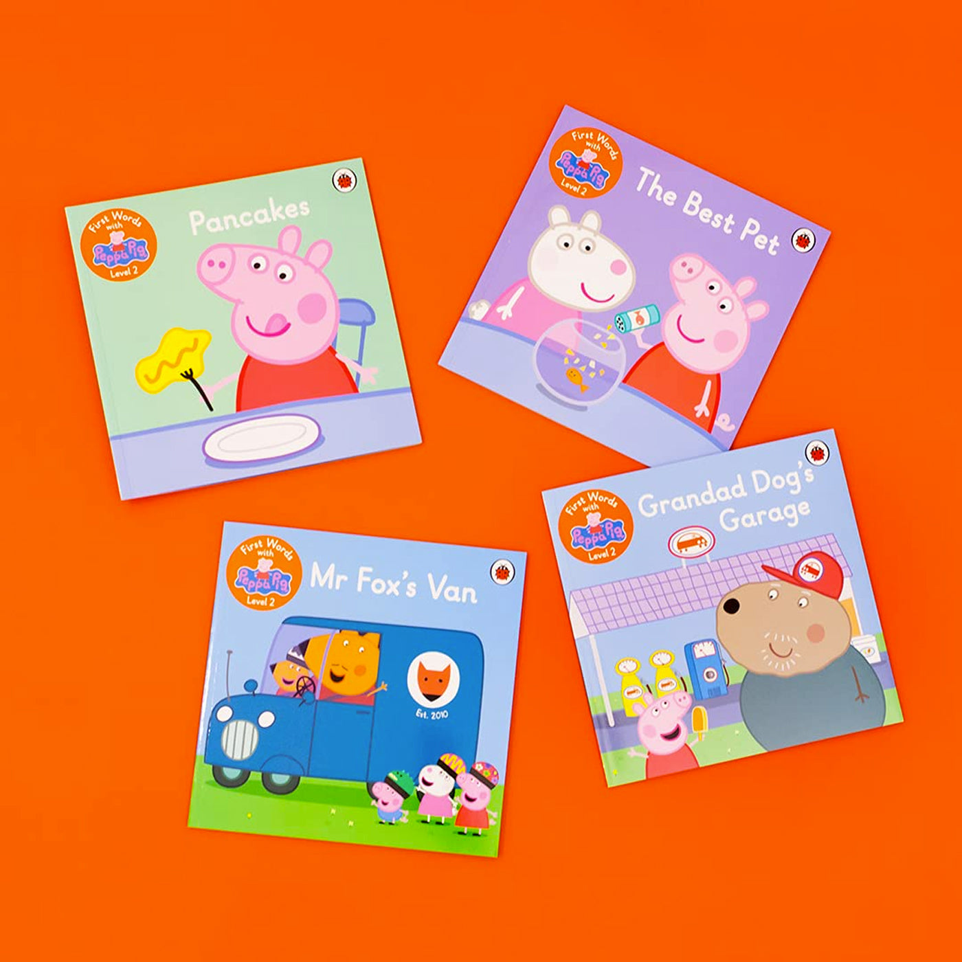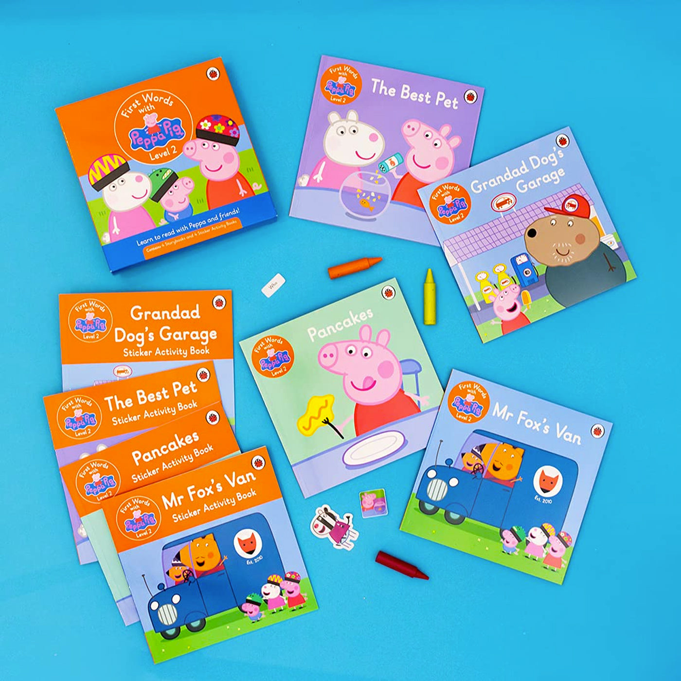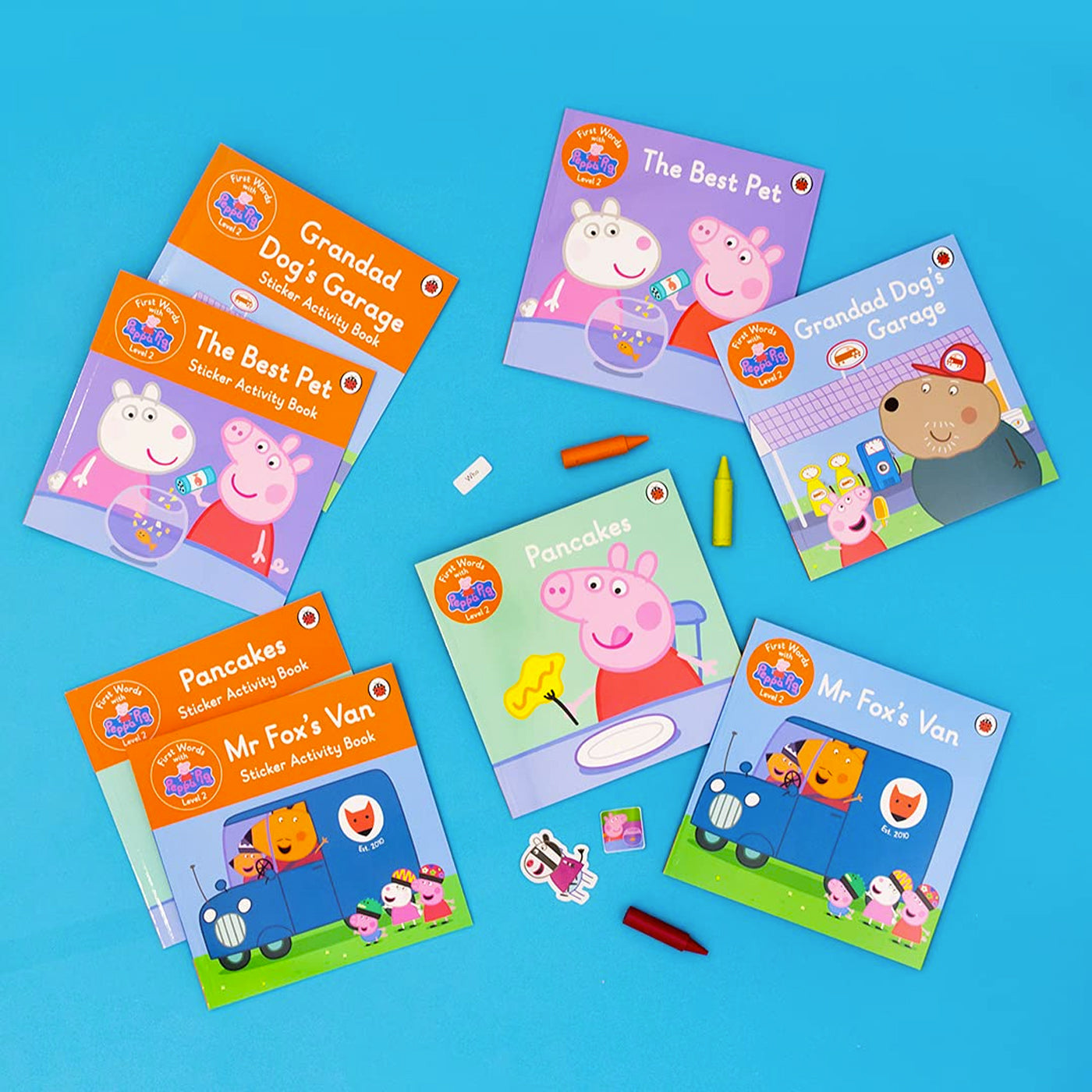Bu harika setin içinde İngilizce öğrenen çocuklar için seviyelendirilmiş 4 adet Peppa Pig hikaye kitabı ve 4 adet sticker aktivite kitabı yer alıyor. Çocuklar, bu kitaplar sayesinde en sık kullanılan İngilizce kelimeleri pratik yapma imkanı buluyor. Set, Grandad Dog's Garage, Me Fox's Van, Pancakes, The Best Pet kitaplarını içeriyor. Bunlara ek olarak aynı isimli sticker içeren aktivite kitapları da bulunuyor.