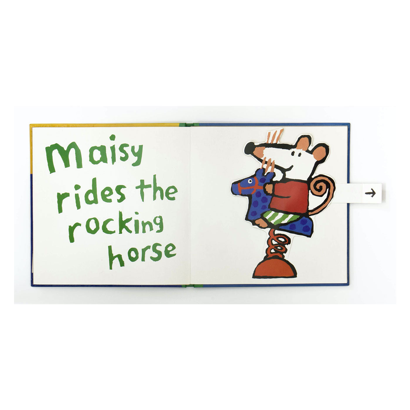 Kanatları kaldırın ve kaydıraktan aşağı kayarken, çocuk havuzunda kürek çekerken, salıncakta sallanır, kum çukurunda oynar, sallanan ata biner, lolipopunu yalar, ördekleri besler ve üç tekerlekli bisikletine binerken Maisy'ye katılın.