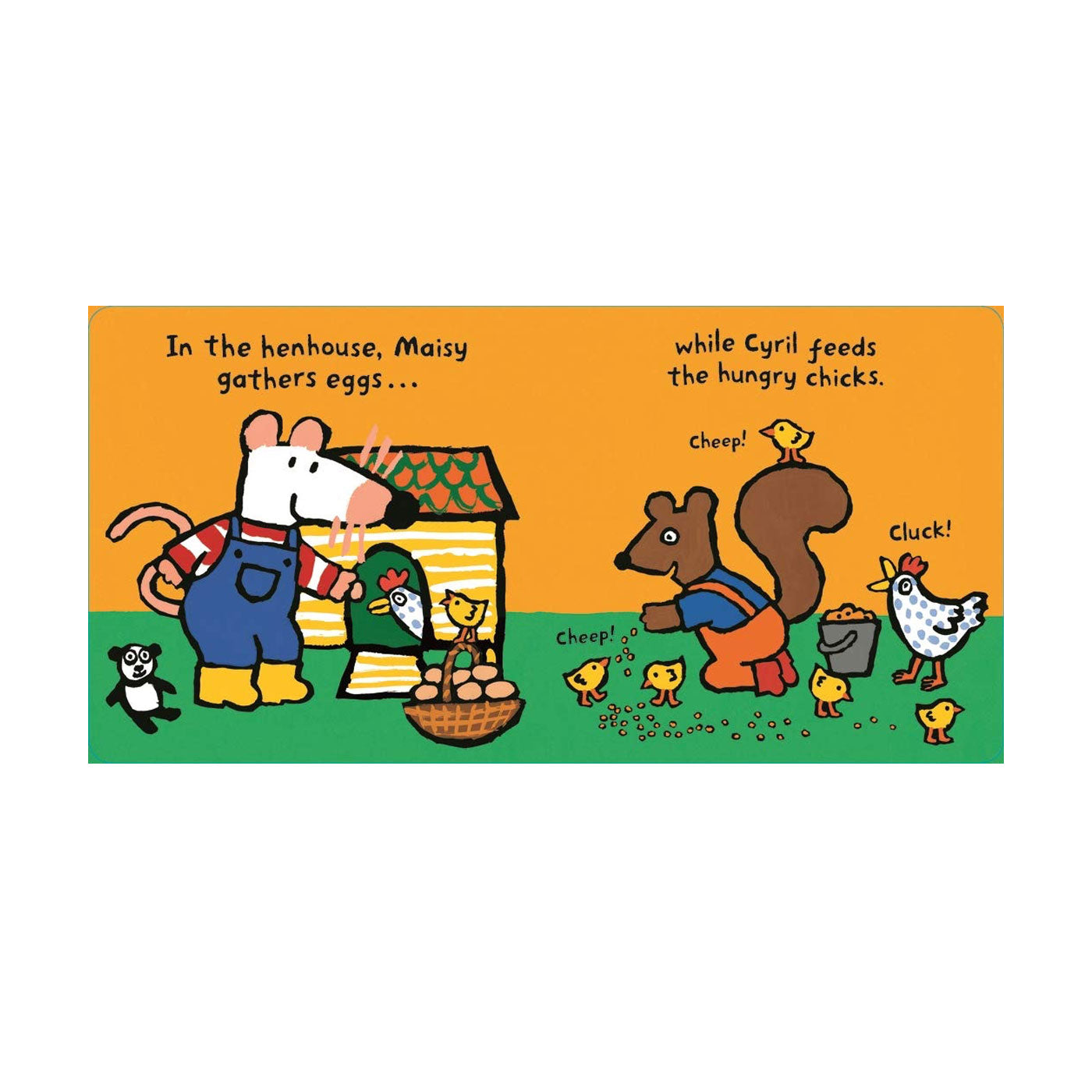 Maisy çiftliğe gidiyor! Traktörü sürerken, sebze tarlasını sularken, tavukları beslerken ve ineği sağarken ona katılın. Ne kadar da yoğun bir gün! Bu harika kitap, Maisy ve Cyril'in pop-up sayfalarının yanı sıra çok sayıda çiftlik hayvanı favorisi içeren bir açılır oyun sahnesi içeriyor! Hayal gücüne dayalı oyunlar ve küçüklere çiftlikte yaşam hakkında her şeyi öğretmek için idealdir.